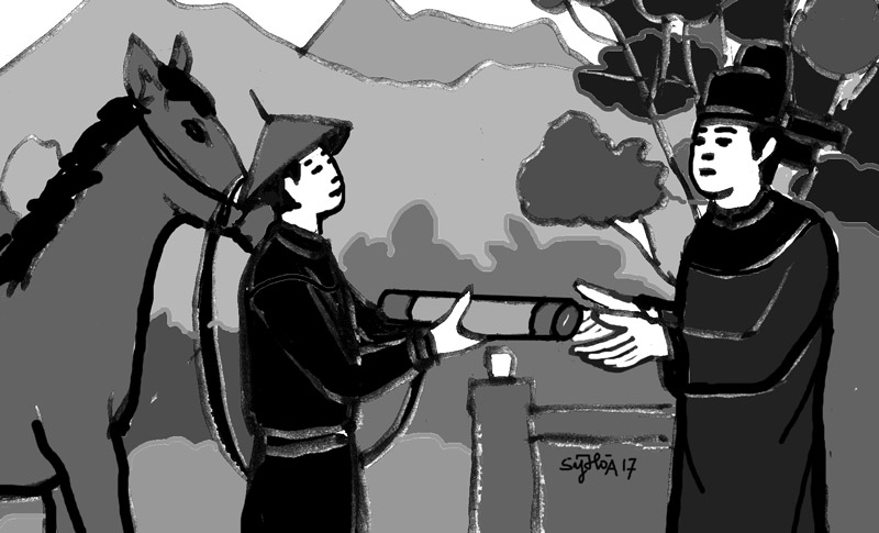 Căn cứ vào lời tâu của Tuần vũ Bình Định, triều đình vua Tự Đức ban lệnh triệu ông về kinh thành Huế và buộc ông phải giải trình về 4 tội: Để cho dân trong huyện bị đói; trộm cướp sinh nhiều; thuế khóa bị chậm trễ; từ chối việc đi sứ sang phương Tây. Được lệnh, ông không về Huế ngay, mà thảo một tờ sớ gửi đi theo đúng thủ tục hành chính. Có điều, khác với lệ thường, trong văn bản, ông chỉ xưng danh mà không xưng “thần” như quy định, nội dung của tờ sớ viết như sau: Sở dĩ dân đói là do mất mùa, mà mất mùa là do thiên tai. Mất mùa, dân thiếu ăn mà triều đình không cho chẩn cấp, nên sinh ra trộm cướp. Dân đang đói thì làm sao có tiền để nộp thuế cho đúng kỳ hạn. Còn việc đi sứ sang Tây, thì điều trước hết phải biết tiếng Tây. Qua xứ người mà không biết tiếng nước người thì chẳng giải quyết được việc gì và có khác nào là chỉ làm trò cười cho thiên hạ. Và có điều đặc biệt trong tờ sớ của ông là, theo một số nhà nghiên cứu thì sau mỗi câu trả lời, ông đều ghi 4 chữ “Khanh hà tội yên”, nghĩa là “Khanh này có tội gì chứ”.