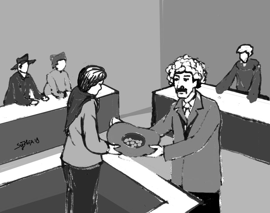Minh họa: SHNghe người phụ nữ nói xong, mọi người xung quanh bắt đầu lầm rầm những tiếng bàn tán. Tuy nhiên, người chủ cửa hàng nơi bị trộm bánh mì thì không đồng ý tha thứ. Ngay lúc đó, ông ta đứng lên nói rằng: Đây là một vùng kém an ninh, thưa ngài. Vì vậy, bà ấy phải bị trừng phạt để làm gương cho những người khác.