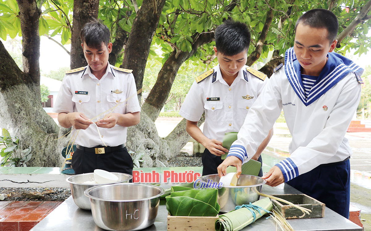 Cán bộ, chiến sĩ đảo Nam Yết tổ chức thi gói và nấu bánh chưng