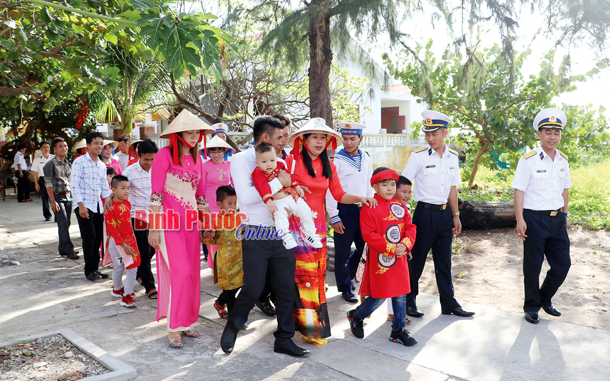 Đón chúng tôi tại cầu cảng, vợ chồng anh Ngô Thành Được - chị Nguyễn Thị Lan, cư dân của xã đảo Song Tử Tây, chia sẻ: Tết ở đảo xa nhưng gia đình tôi vẫn có cây cảnh chưng tết. Vẫn gói bánh chưng, đi chùa lễ phật và rất nhiều trò chơi dân gian khiến chúng tôi cảm thấy có đầy đủ hương vị quê nhà giữa muôn trùng sóng gió biển Đông. Mỗi chiếc lá dong, mỗi món quà đất liền gửi ra mang theo hơi ấm và tình cảm của đồng bào cả nước. Gia đình đã 4 lần đón tết trên đảo nhưng năm nào tôi cũng cảm thấy tết nơi đây thật thiêng liêng và rất đặc biệt.