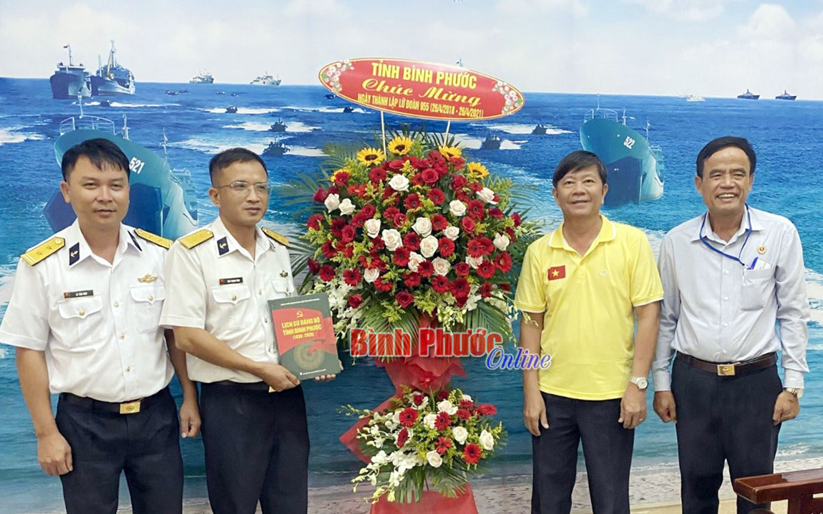 Thay mặt lãnh đạo tỉnh, đoàn công tác đã gửi tặng lẵng hoa chúc mừng Lữ đoàn 955 Vùng 4 Hải quân nhân kỷ niệm 3 năm ngày thành lập.