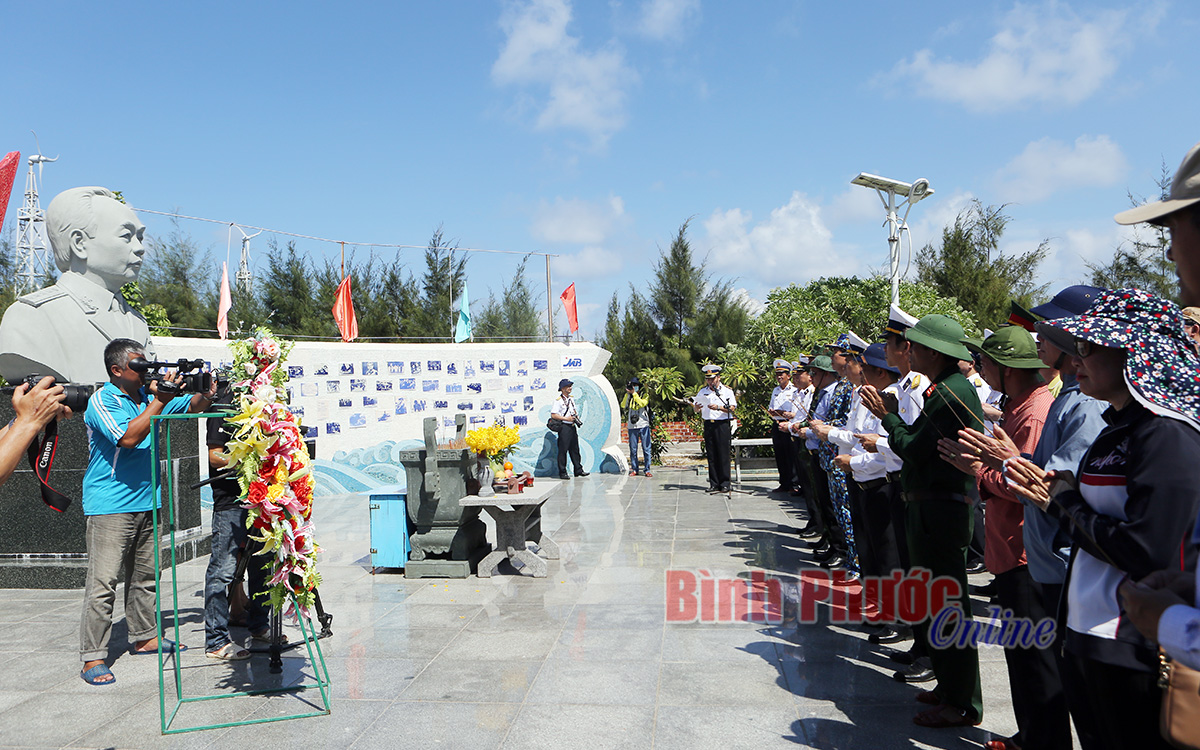 Đoàn công tác dâng hương tượng đài tưởng niệm Đại tướng Võ Nguyên Giáp trên đảo Sơn Ca, huyện đảo Trường Sa