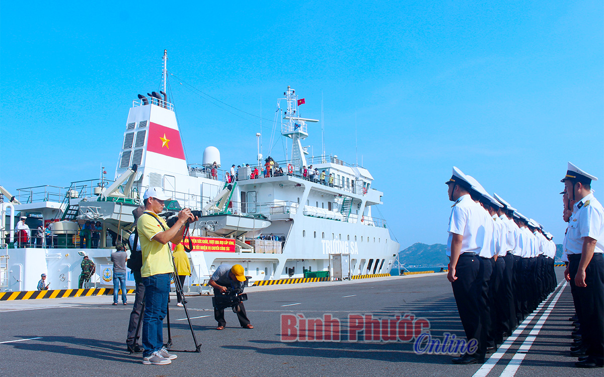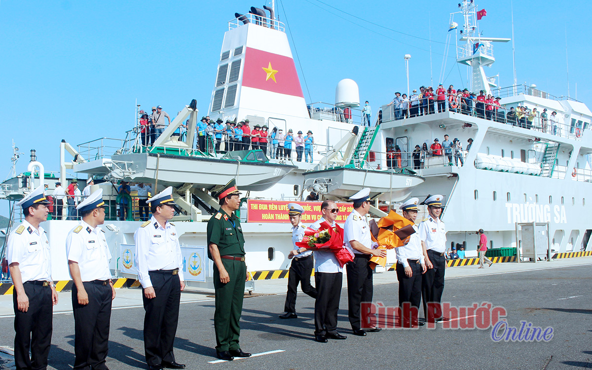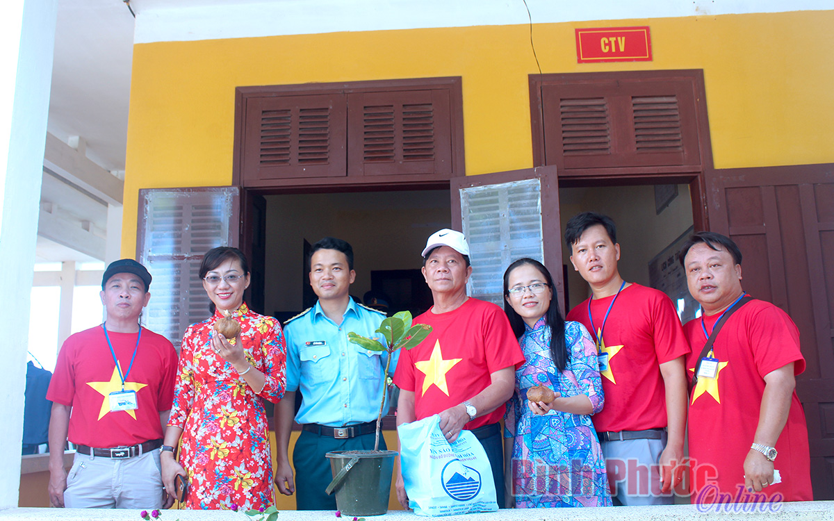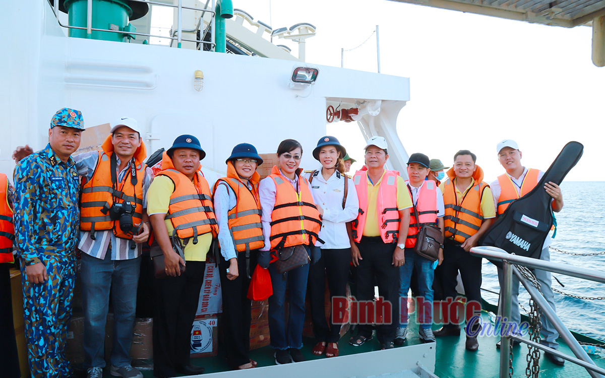 Đoàn công tác tỉnh thăm và tặng quà động viên Đại úy Lê Văn Hùng (ở xã Thanh Lương, thị xã Bình Long) đang công tác tại đảo Nam Yết, huyện đảo Trường Sa