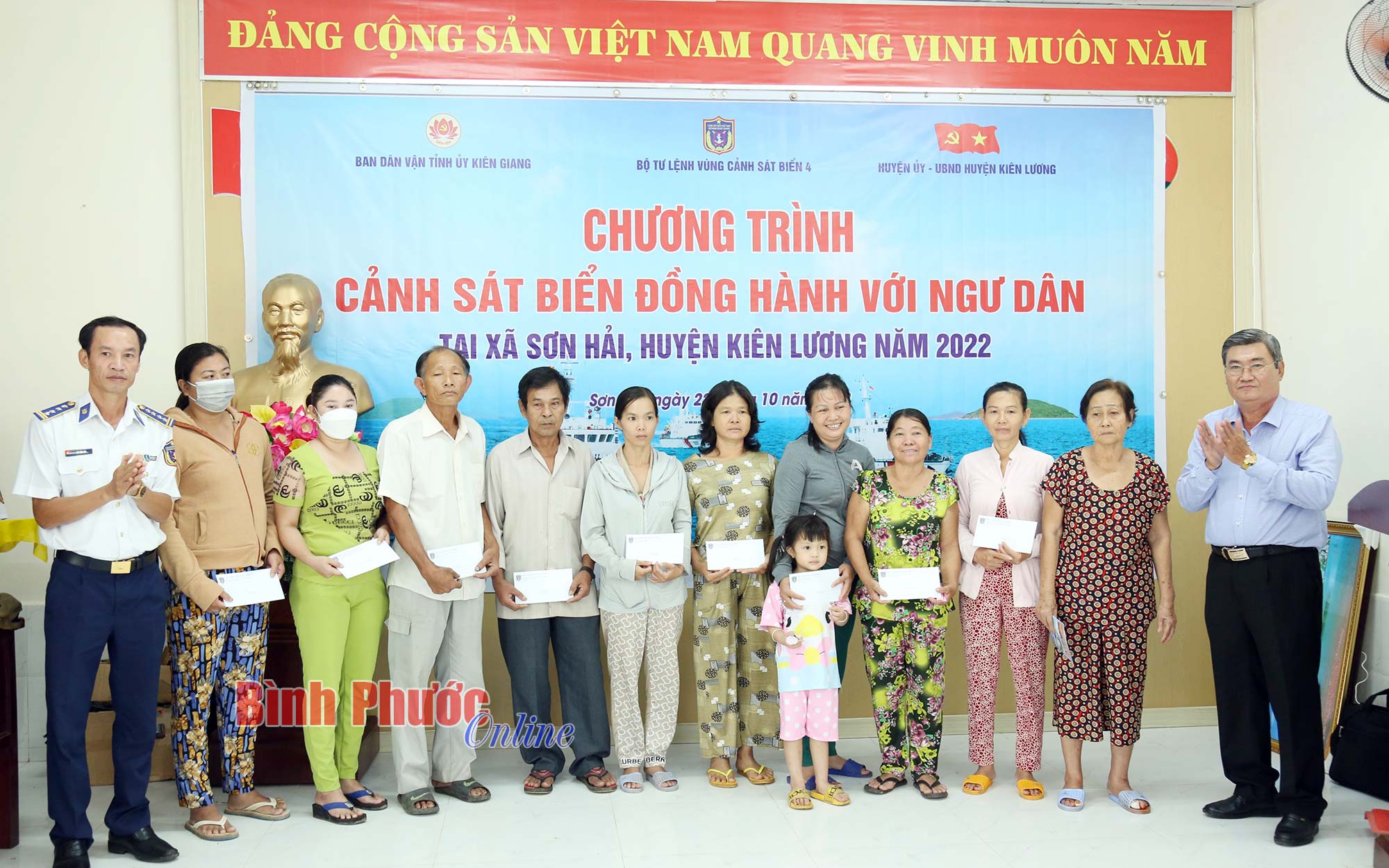 Hưởng ứng tháng cao điểm “Chung tay vì người nghèo” năm 2022, BTL Vùng Cảnh sát biển 4 đã trao tặng 100 suất quà cho các gia đình chính sách, ngư dân có hoàn cảnh khó khăn; tặng 10 xe đạp, 150 suất học bổng cho các em học sinh của trường Tiểu học và Trung học cơ sở Sơn Hải. Đồng thời, phối hợp với Báo Người Lao động và Bệnh viện Hùng Vương (TP. Hồ Chí Minh) trao tặng 600 lá cờ Tổ quốc, 30 ảnh Bác Hồ, 30 tủ thuốc y tế cho 30 tàu cá trên địa bàn xã Sơn Hải.