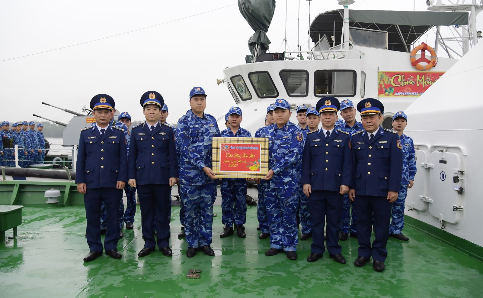 Nhân dịp này, đồng chí Chính ủy Cảnh sát biển đã tặng quà và chúc cán bộ, chiến sĩ BTL Vùng Cảnh sát biển 1 đón Tết cổ truyền của dân tộc vui tươi, mạnh khỏe, bảo đảm an toàn và hoàn thành xuất sắc mọi nhiệm vụ được giao.