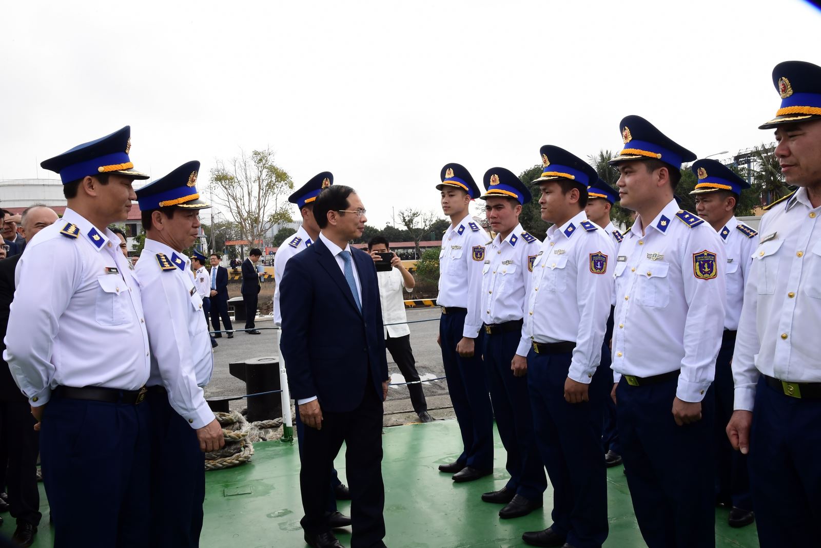 Bộ trưởng Bộ Ngoại giao Bùi Thanh Sơn thăm, động viên cán bộ, chiến sĩ tàu CSB 2008, Hải đội 112, Hải đoàn 11. Ảnh: Mạnh Thường