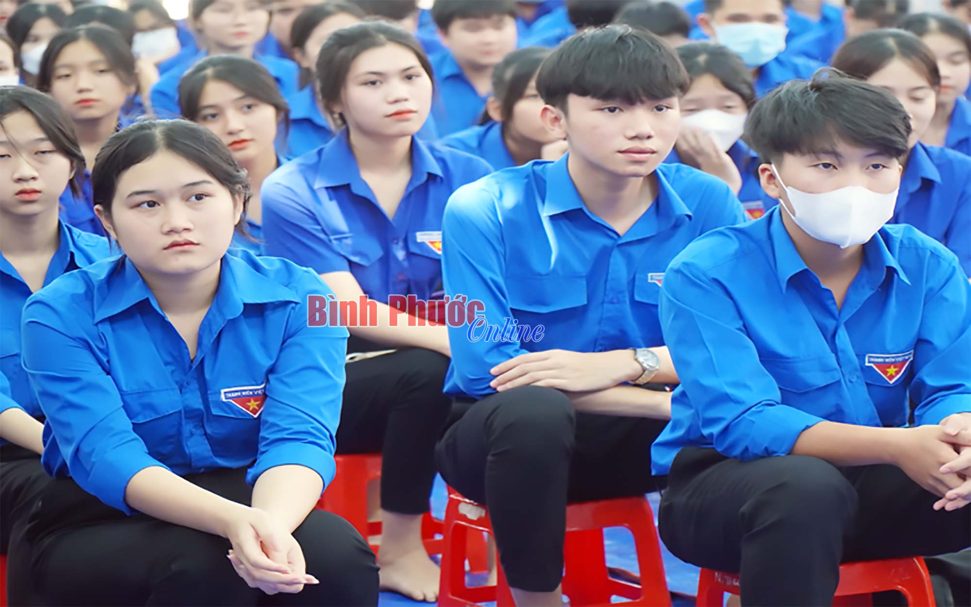 Các em học sinh Trường THPT Nguyễn Khuyến tham gia buổi tuyên truyền