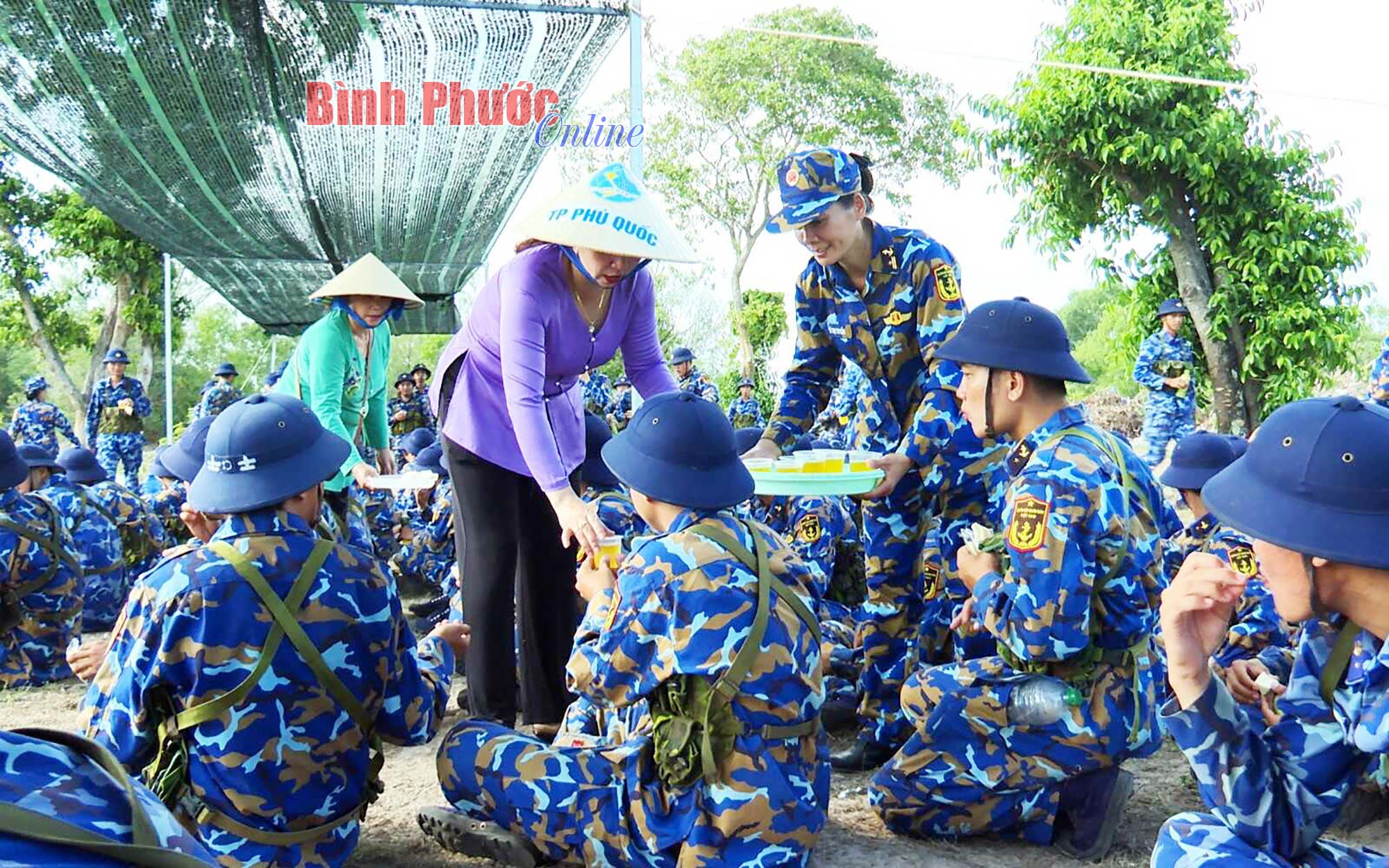 Những ly nước mát, những dĩa trái cây, kẹo bánh thơm ngon được cán bộ, hội viên phụ nữ trao tận tay các chiến sĩ trong giờ giải lao