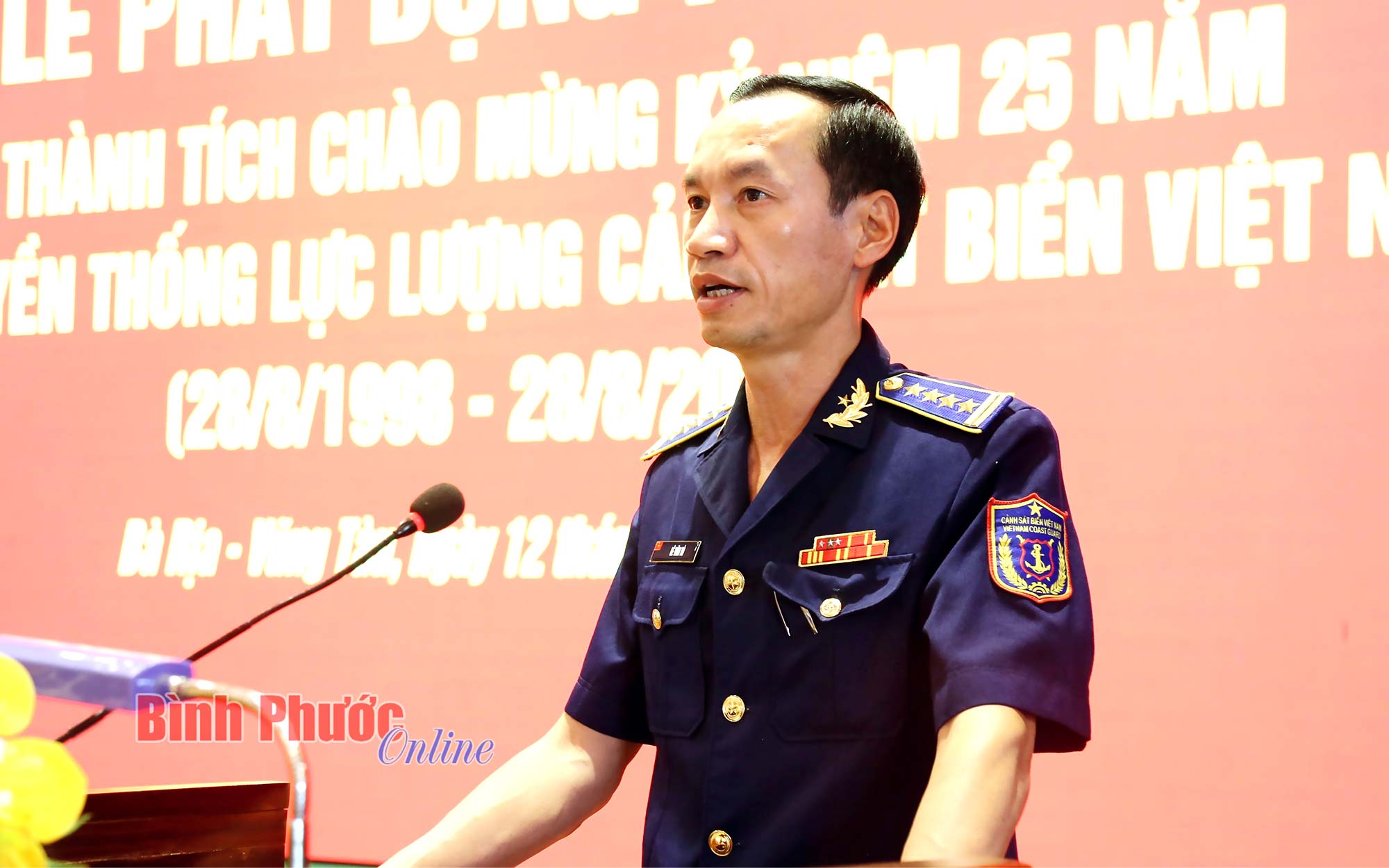Phát biểu tại lễ phát động, Đại tá Lê Văn Tú yêu cầu các cơ quan, đơn vị cần tập trung làm tốt công tác giáo dục chính trị, tư tưởng, giáo dục truyền thống 25 năm xây dựng chiến đấu và trưởng thành của lực lượng Cảnh sát biển Việt Nam; gắn với thực hiện Kết luận số 01, Chỉ thị số 05 của Bộ Chính trị; Nghị quyết số 847 của Quân ủy Trung ương về phát huy phẩm chất “Bộ đội Cụ Hồ”, kiên quyết chống chủ nghĩa cá nhân trong tình hình mới; Phong trào“Bốn tốt, bốn không, bốn chống”. Đề cao cảnh giác, chủ động, nhạy bén, kiên quyết đấu tranh làm thất bại mọi âm mưu, thủ đoạn“diễn biến hòa bình” của các thế lực thù địch, phản động, cơ hội chính trị; tập trung nâng cao chất lượng huấn luyện; luyện tập thuần thục các phương án và duy trì tốt khả năng sẵn sàng chiến đấu; triển khai thực hiện hiệu quả hoạt động tuần tra, kiểm tra, kiểm soát, duy trì pháp luật trên các vùng biển trọng điểm; chống khai thác hải sản bất hợp pháp, không báo cáo và không theo quy định (IUU); sẵn sàng thực hiện tốt nhiệm vụ tìm kiếm, cứu hộ, cứu nạn, khắc phục hậu quả thiên tai bão lũ. Chủ động phối hợp chặt chẽ với cấp ủy, chính quyền, đoàn thể địa phương trên địa bàn đóng quân tổ chức các hoạt động Kỷ niệm 25 năm Ngày truyền thống lực lượng Cảnh sát biển, gắn với kỷ niệm 78 năm Cách mạng tháng Tám và Quốc khánh 2-9. Tích cực tham gia các hoạt động“Đền ơn đáp nghĩa”, công tác chính sách quân đội và hậu phương quân đội; tiếp tục phát huy hiệu quả Chương trình“Cảnh sát biển đồng hành với ngư dân”,“Cảnh sát biển với đồng bào dân tộc, tôn giáo”, tham gia giúp nhân dân trên địa bàn xây dựng nông thôn mới, xóa đói, giảm nghèo. Góp phần thực hiện thắng lợi nhiệm vụ chính trị năm 2023, bảo vệ vững chắc chủ quyền biển đảo, giữ vững an ninh, trật tự, an toàn trên các vùng biển và thềm lục địa của Tổ quốc.