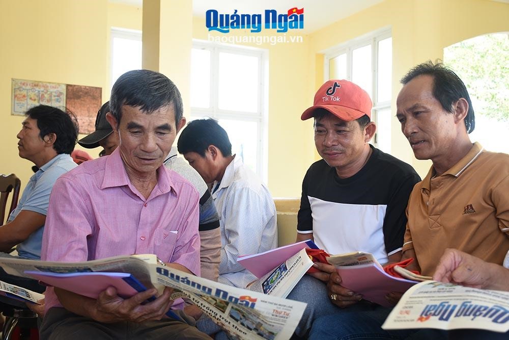Ngư dân xã Nghĩa An (TP. Quảng Ngãi) đọc thông tin về chống khai thác IUU trên báo Quảng Ngãi