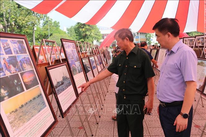 Khách tham quan xem các ảnh, tư liệu được trưng bày tại Triển lãm