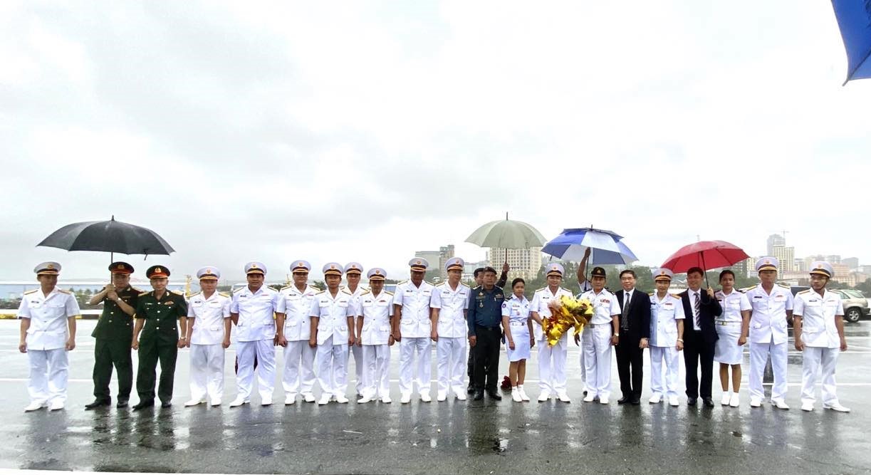 Hải quân Hoàng gia Campuchia đón đoàn công tác Vùng 5 Hải quân nhân dân Việt Nam tại cảng Sihanoukville. Ảnh: Văn Định