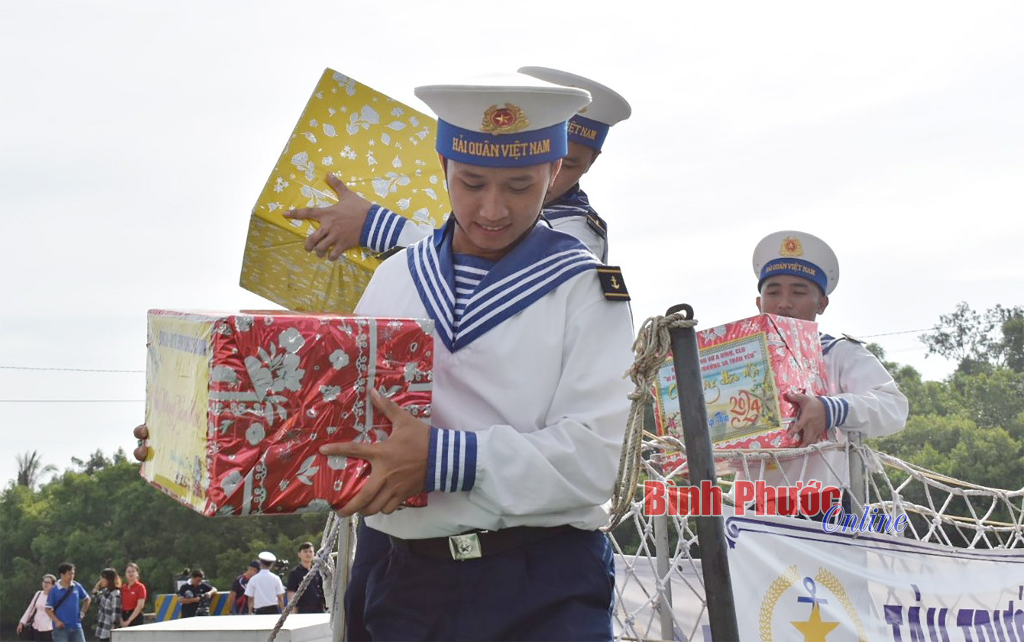 “Quà tết gồm gạo nếp, lá dong, quất cảnh, mai vàng, đào, nhu yếu phẩm theo tiêu chuẩn của Bộ Quốc phòng, Quân chủng Hải quân, Vùng 2 Hải quân và tình cảm của đồng bào cả nước gửi tặng cán bộ, chiến sĩ đang làm nhiệm vụ trên biển, đảo, thềm lục địa thiêng liêng của Tổ quốc. Biên đội tàu sẽ thực hiện hải trình vượt sóng cùng các nhà báo, phóng viên đến động viên cán bộ, chiến sĩ là sự cổ vũ to lớn của hậu phương, giúp cán bộ, chiến sĩ yên tâm vui xuân mới, chắc tay súng, bảo vệ vững chắc chủ quyền Tổ quốc từ hướng biển”, Đại tá Phạm Quyết Tiến nhấn mạnh.