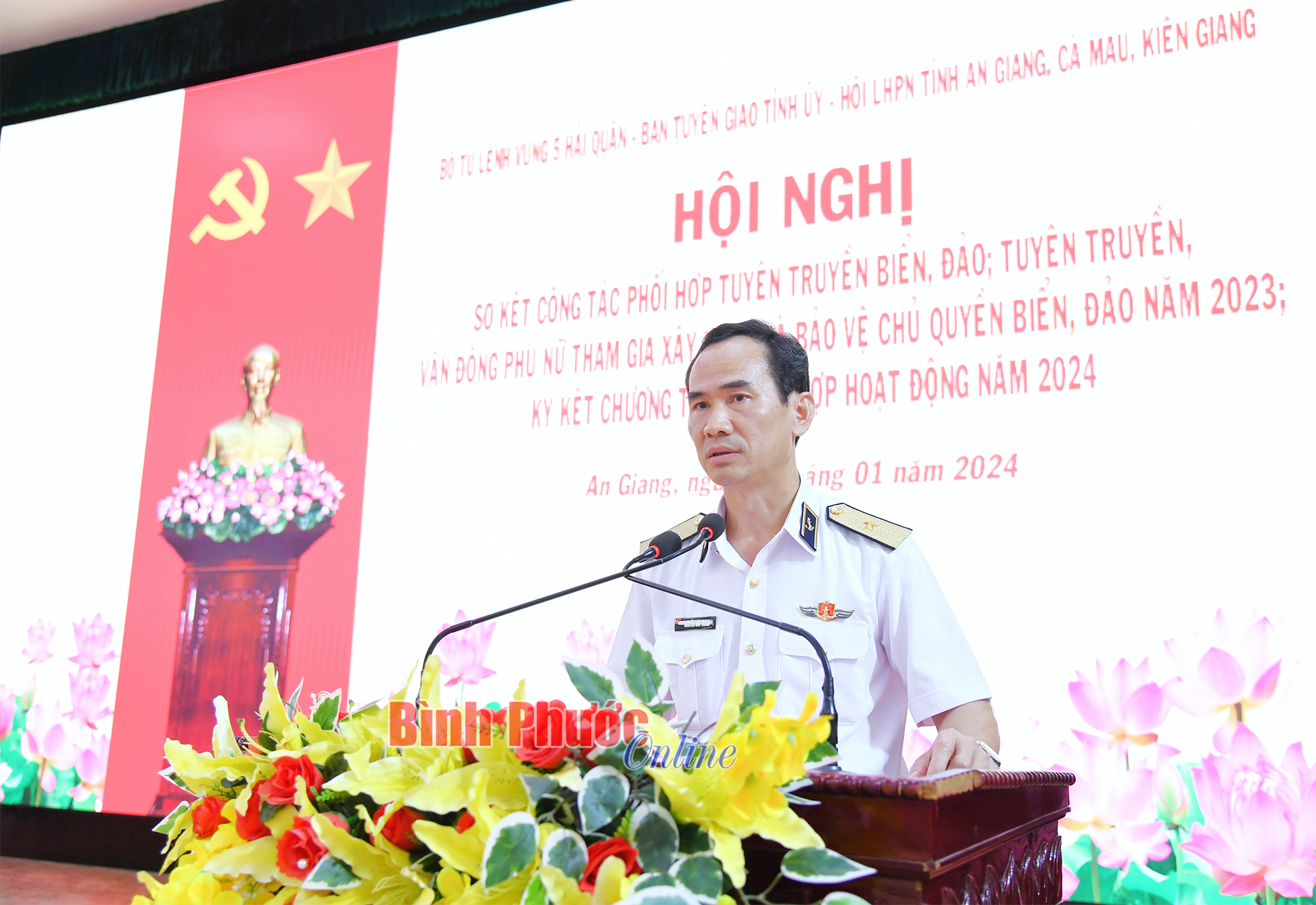 Năm 2023, Bộ Tư lệnh Vùng 5 Hải quân đã phối hợp với Ban Tuyên giáo Tỉnh ủy và Hội Liên hiệp Phụ nữ các tỉnh An Giang, Kiên Giang, Cà Mau thực hiện tốt công tác tuyên truyền biển, đảo, tuyên truyền thu hút nguồn nhân lực xây dựng Quân chủng Hải quân hiện đại cho cán bộ, đảng viên và các tầng lớp nhân dân. Đối tượng tuyên truyền tiếp tục được mở rộng, tập trung vào các cựu chiến binh, chức sắc tôn giáo, người có uy tín trong đồng bào các dân tộc thiểu số, học sinh, sinh viên, ngư dân và chủ các phương tiện khai thác hải sản trên biển.