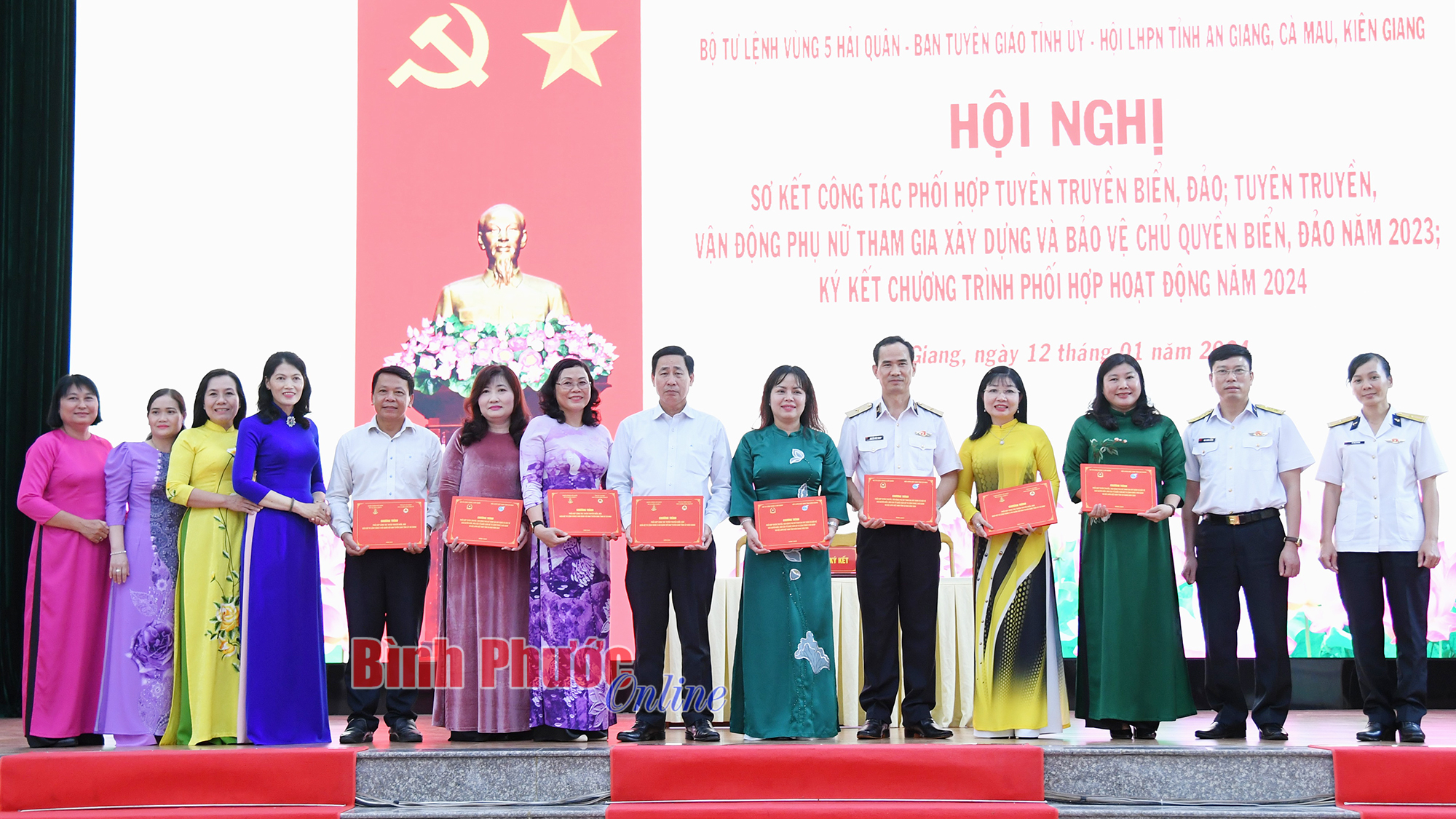 Cũng tại hội nghị, Bộ Tư lệnh Vùng 5 Hải quân, Ban Tuyên giáo Tỉnh ủy và Hội Liên hiệp Phụ nữ các tỉnh An Giang, Kiên Giang, Cà Mau đã ký kết chương trình phối hợp hoạt động năm 2024.