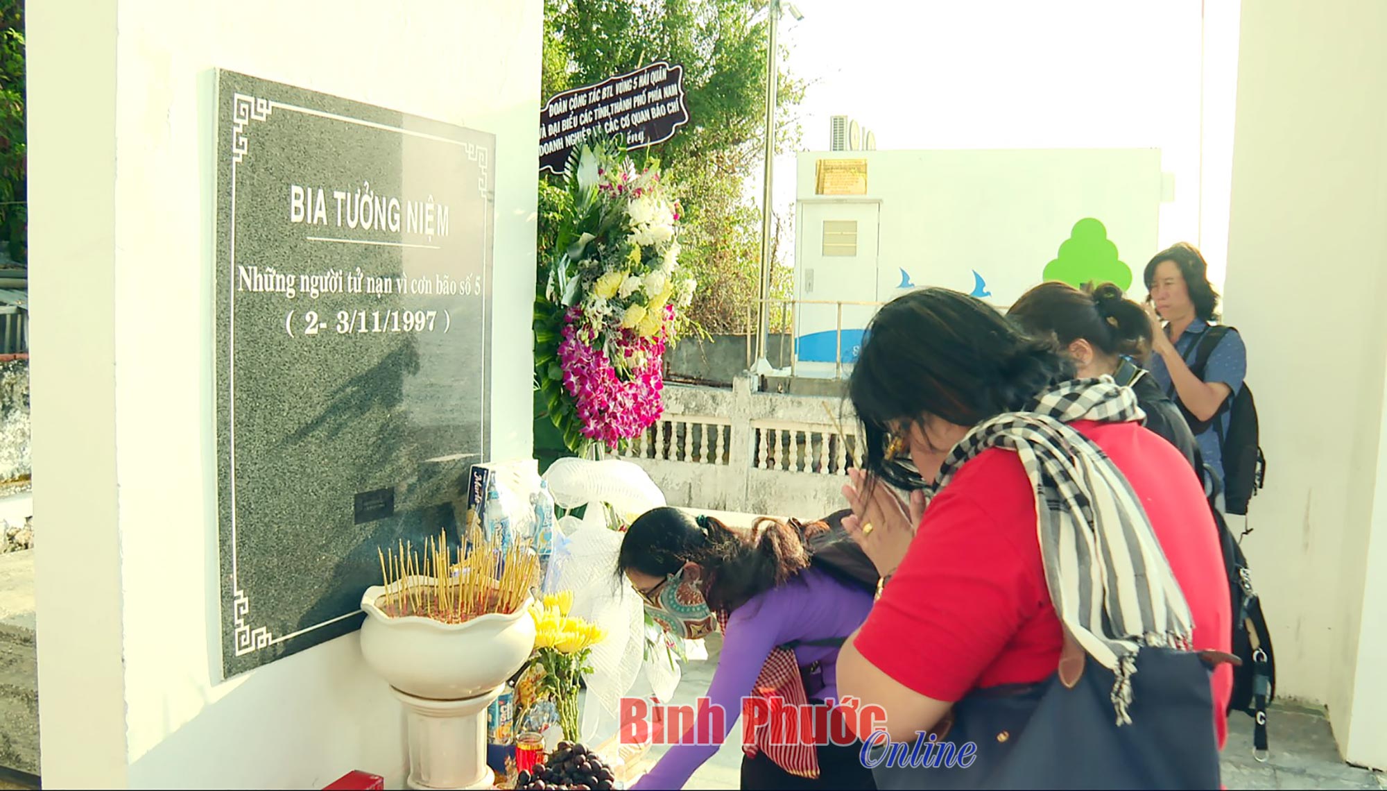Trước đó, đoàn công tác đã cùng đại diện chính quyền địa phương thắp hương tại đài tưởng niệm tưởng nhớ gần 500 ngư dân bị thiệt mạng trong cơn bão số 5 (Linda) năm 1997.