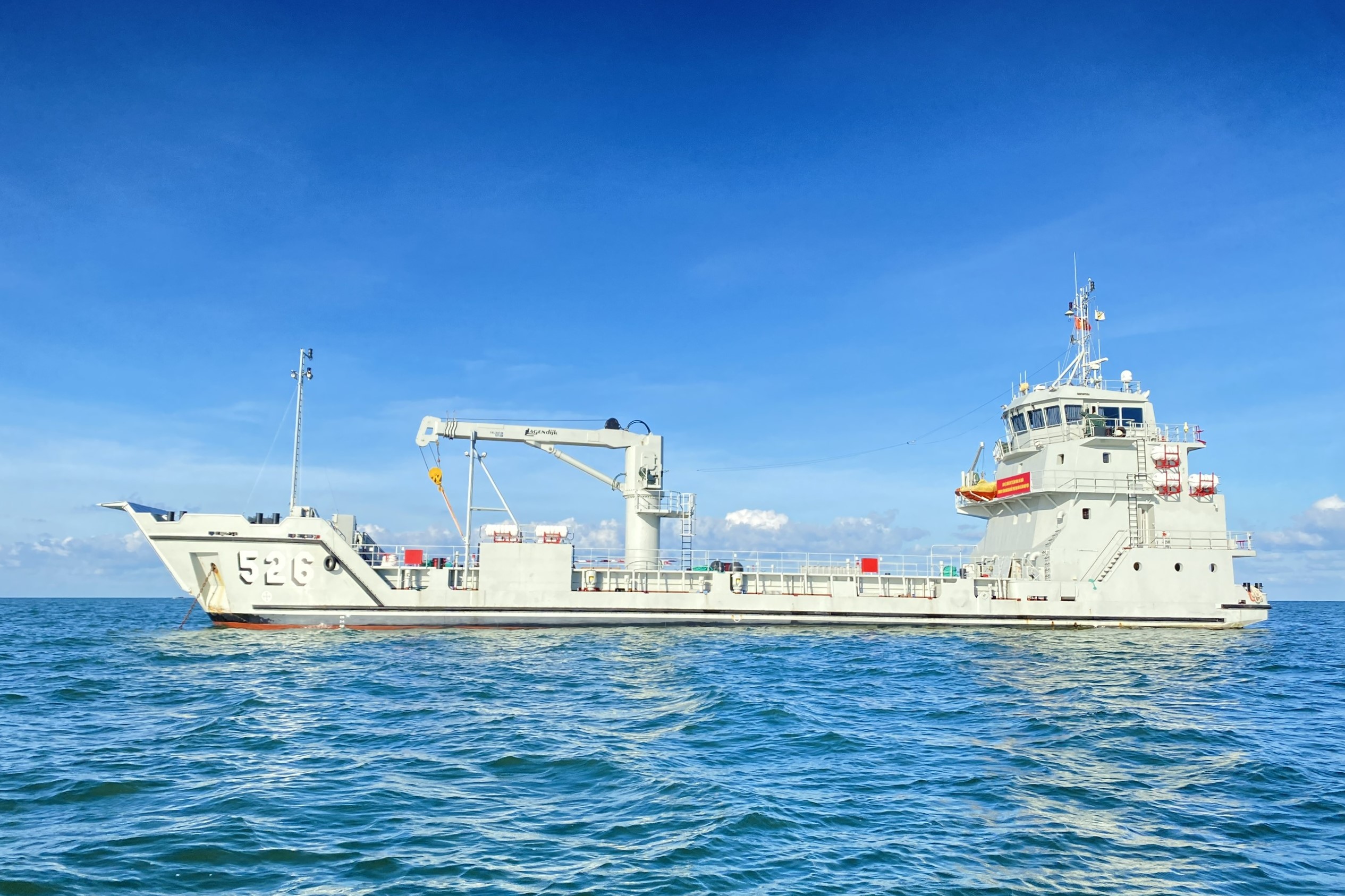 Tàu 526 neo đậu cấp nước cho người dân đảo Hòn Chuối