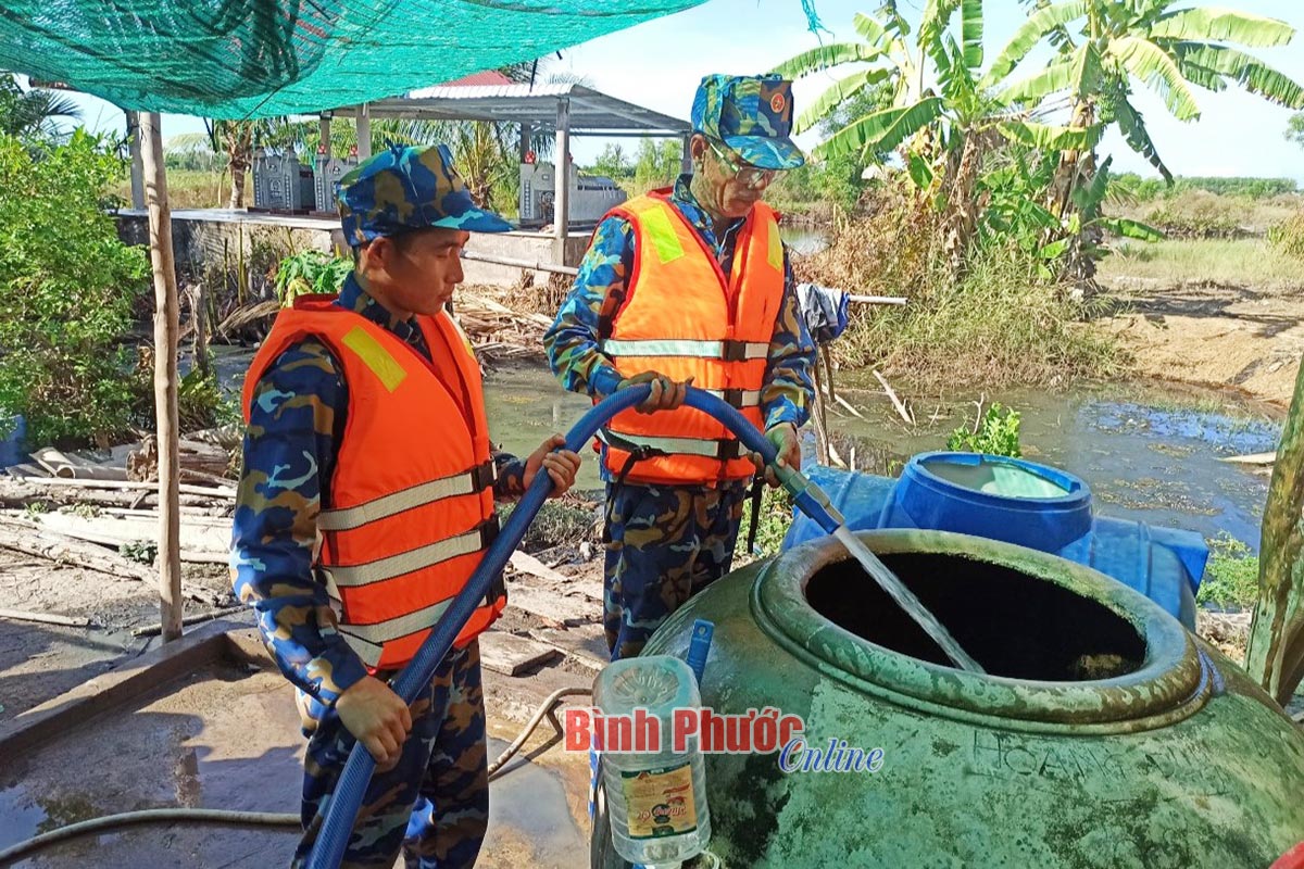 Cán bộ, chiến sĩ Vùng 5 Hải quân đã tiếp nhận, vận chuyển hơn 600m3 nước ngọt từ đảo Phú Quốc, tỉnh Kiên Giang và từ Trạm cấp nước sinh hoạt xã Biển Bạch - Tân Bằng, huyện Thới Bình, tỉnh Cà Mau cấp cho người dân.