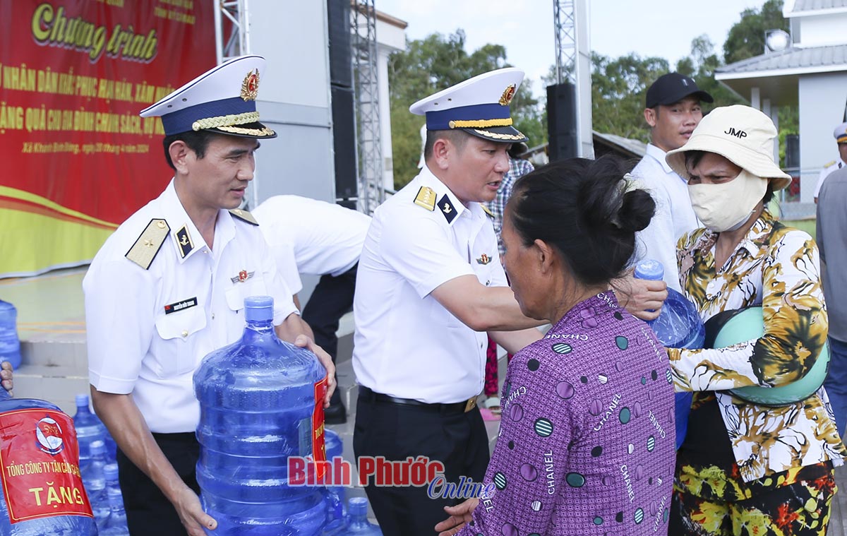Ngoài hỗ trợ nước sinh hoạt cho bà con, Bộ Tư lệnh Vùng 5 Hải quân còn tặng 30 suất quà (mỗi suất trị giá 500 ngàn đồng) cho các gia đình chính sách. Đơn vị cũng đã phối hợp với Tổng công ty Tân cảng Sài Gòn và Ban Dân vận Tỉnh ủy Cà Mau trao tặng 150 bồn chứa nước (loại 500 lít), 200 bình nước lọc tinh khiết (loại 20 lít) và 50 phần quà cho các hộ nghèo, khó khăn trên địa bàn 3 huyện: Trần Văn Thời, U Minh và Thới Bình với tổng kinh phí gần 400 triệu đồng.