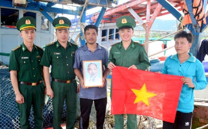 Nhận bức ảnh chân dung Bác Hồ cùng lá cờ Tổ quốc của BĐBP trao tặng, anh Kiên đặt ảnh Bác ở nơi trang trọng. Tiếng máy nổ giòn, con tàu hướng mũi tiến ra cửa biển, mang theo lá cờ đỏ sao vàng tung bay trong gió.
