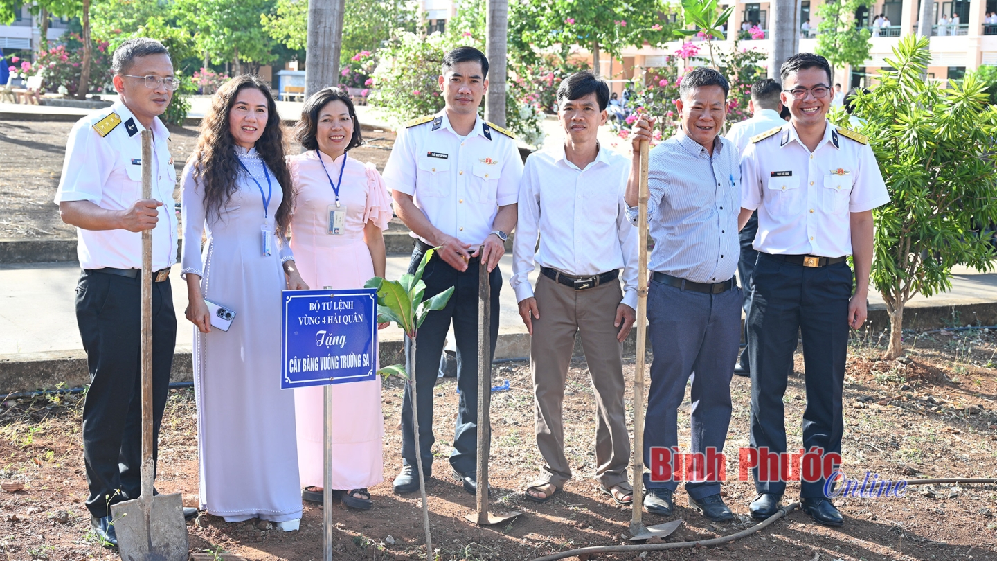 Trước đó, các đại biểu đã cùng các thầy cô giáo tham gia trồng 2 cây bàng vuông do Vùng 4 Hải quân tặng.
