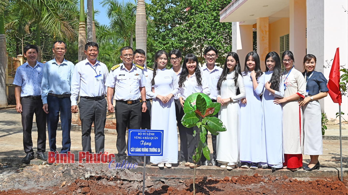 Thầy trò Trường THPT Lộc Ninh, huyện Lộc Ninh trồng cây bàng vuông Trường Sa