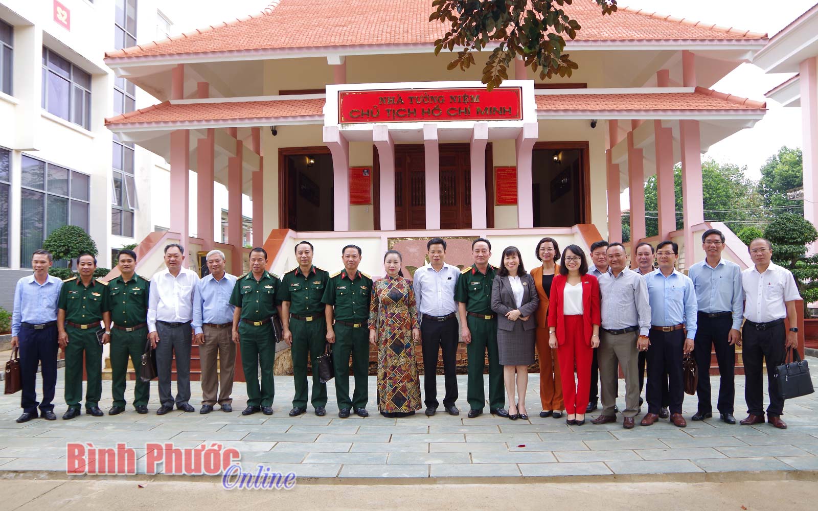 Các đại biểu chụp hình lưu niệm tại Nhà bia tưởng niệm Bác Hồ, Bộ tư lệnh Binh đoàn 16