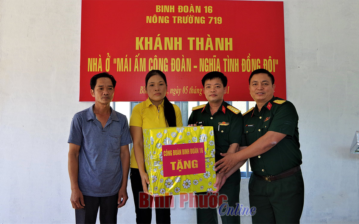 Dịp này, Ban giám đốc Nông trường 719 và các tổ chức quần chúng đã trao tặng thêm một số vật dụng sinh hoạt nhằm hỗ trợ, động viên gia đình chị Thắm yên tâm công tác, hoàn thành tốt nhiệm vụ được giao.