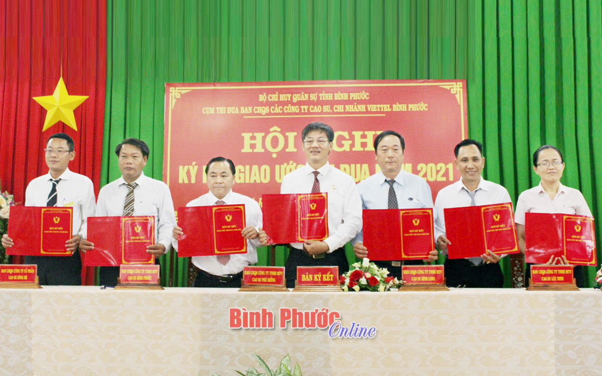 Đại tá Trịnh Thanh Tam, Phó chỉ huy trưởng Bộ CHQS tỉnh và ông Lê Tiến Vượng, Tổng giám đốc Công ty TNHH MTV cao su Phú Riềng đến dự và đồng chủ trì hội nghị.