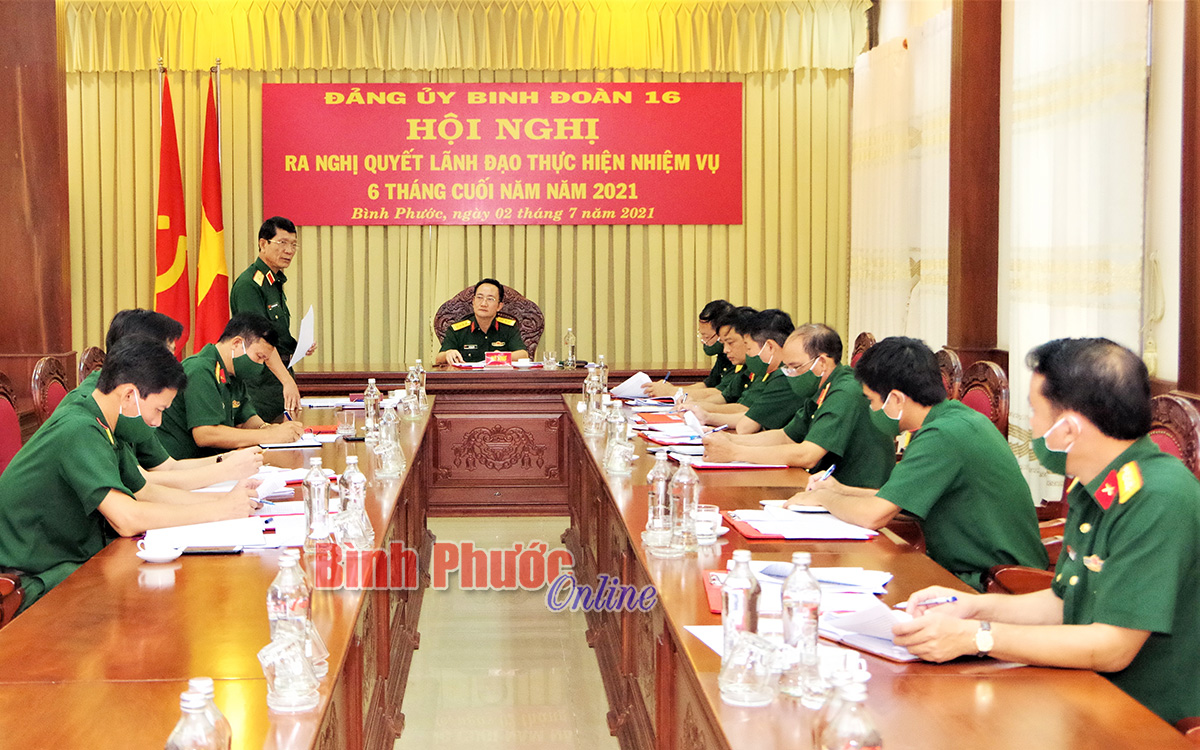Trong 6 tháng đầu năm 2021, Đảng ủy Binh đoàn 16 đã lãnh đạo, chỉ đạo các cơ quan, đơn vị chủ động xây dựng, triển khai thực hiện tốt kế hoạch công tác quân sự, quốc phòng. Hoạt động công tác Đảng, công tác chính trị có nhiều chuyển biến tích cực, thực hiện có hiệu quả phong trào thi đua quyết thắng với chủ đề “Đoàn kết, đổi mới, kỷ cương, sáng tạo, quyết thắng”; hoàn thành tốt các chỉ tiêu, kế hoạch sản xuất, kinh doanh đề ra.