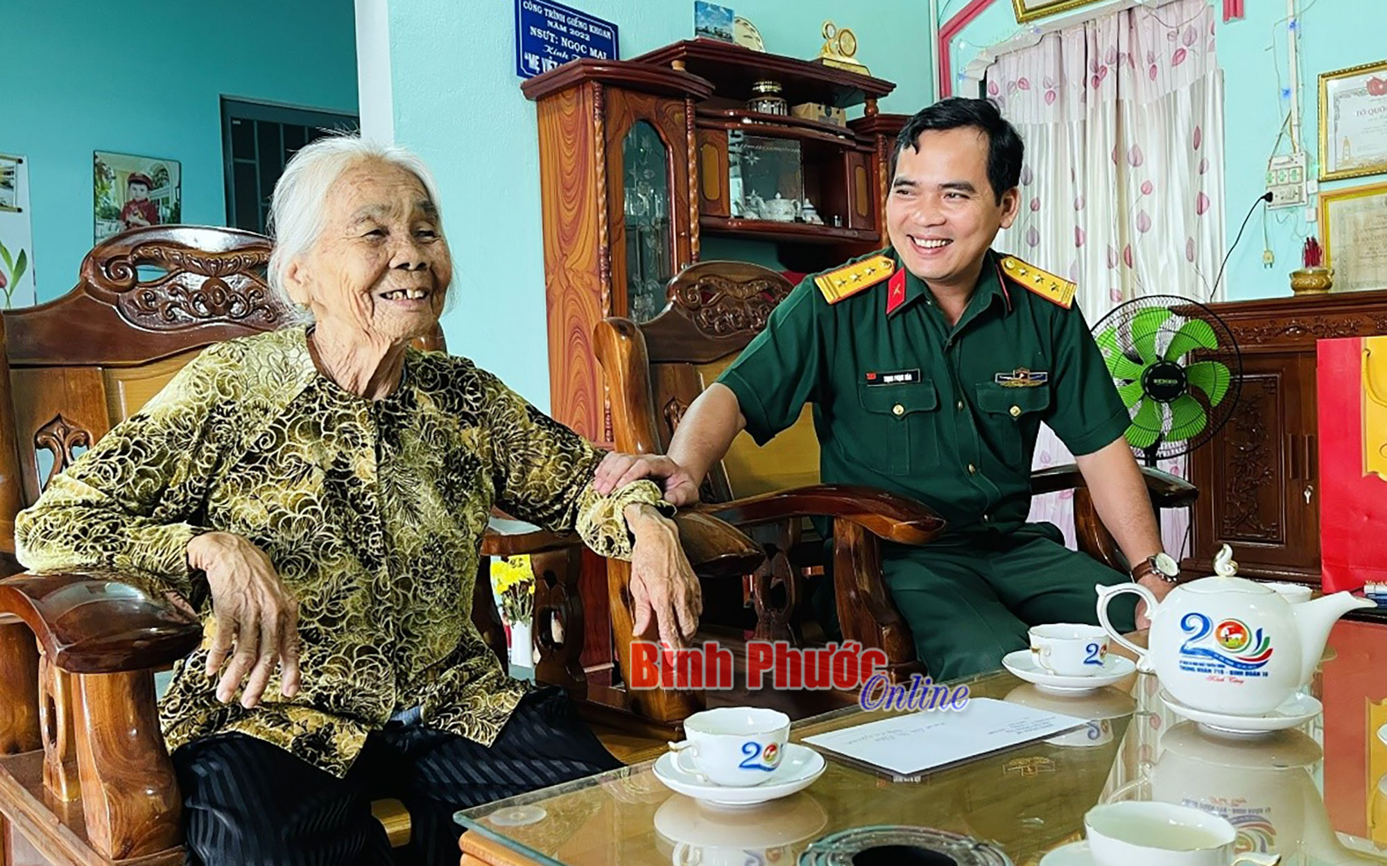 Thượng tá Trịnh Phạm Hòa, Bí thư Đảng ủy, Chính ủy Trung đoàn 719, Binh đoàn 16 thăm Mẹ Việt Nam anh hùng Trần Thị Bảy