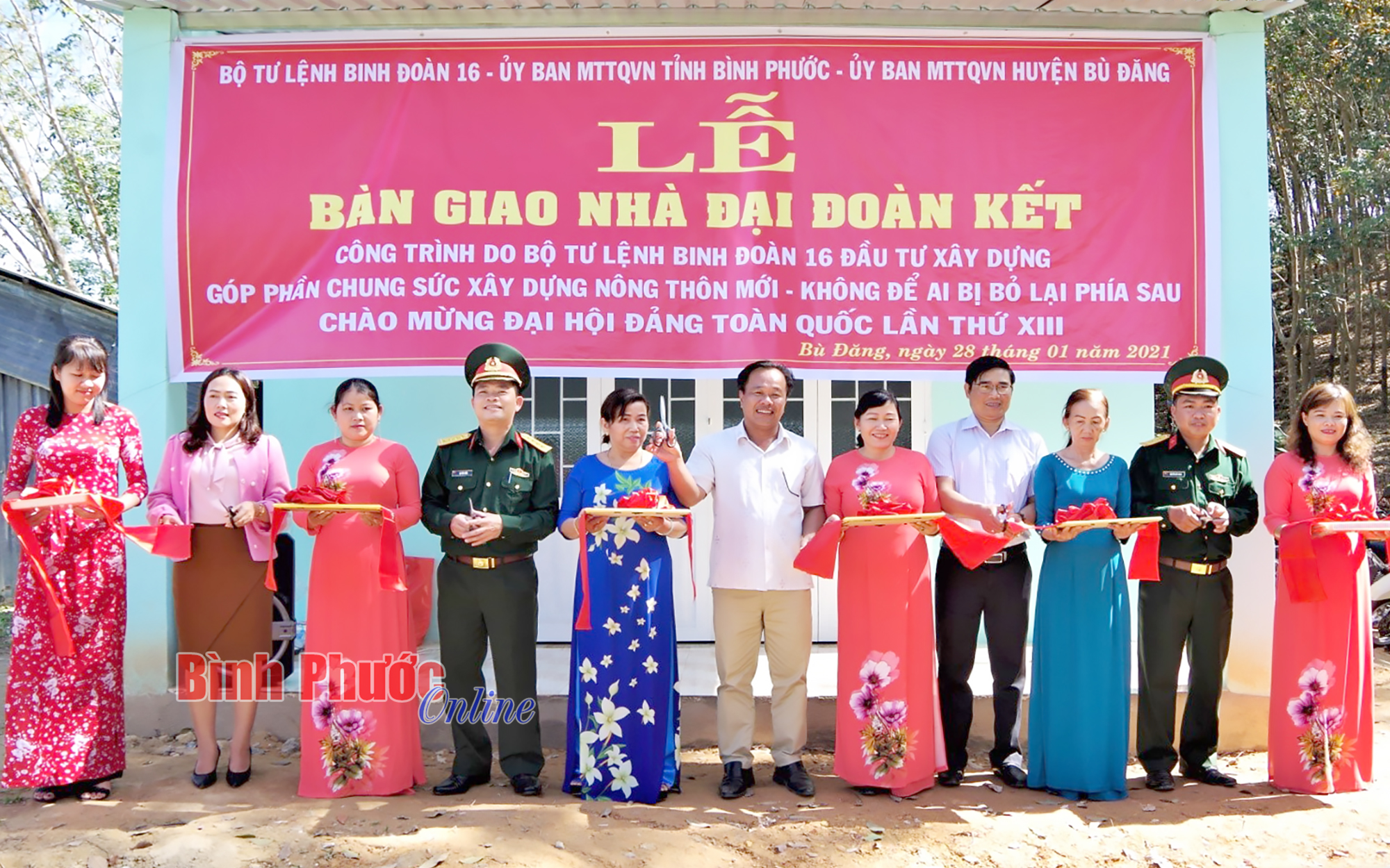 Đại diện Binh đoàn 16 và huyện Bù Đăng cắt băng khánh thành bàn giao nhà đại đoàn kết cho đồng bào hoàn cảnh khó khăn về nhà ở trên địa bàn xã Thống Nhất