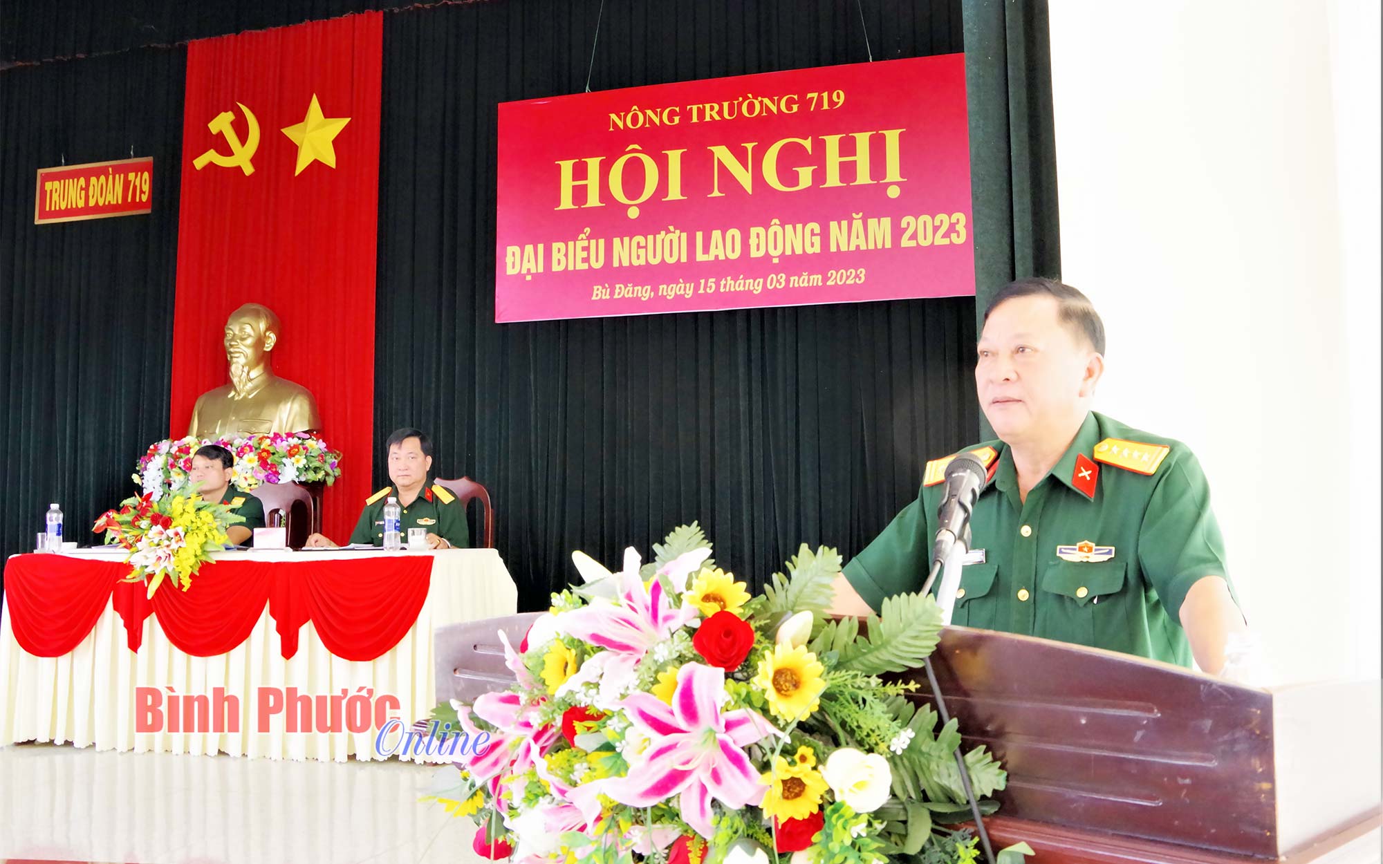 Phó Giám đốc công ty đã giao nhiệm vụ cho Đảng ủy, Ban Giám đốc Nông trường 719 tiếp tục thực hiện chính sách hỗ trợ cho người lao động; tổ chức triển khai thực hiện nghiêm túc các quyết định, kết luận của giám đốc công ty về chỉ tiêu kế hoạch sản xuất năm 2023, cụ thể hóa thành kế hoạch, chương trình hành động trong thời gian tới. Phát huy sức mạnh đoàn kết tập thể, sức mạnh nội lực, tiếp tục điều hành sản xuất kinh doanh hiệu quả, bền vững; tăng năng suất lao động, bảo đảm mọi chế độ chính sách, thu nhập cho người lao động; thực hiện tốt quy chế dân chủ cơ sở, minh bạch, công khai trong mọi nhiệm vụ, để người lao động yên tâm gắn bó với đơn vị, chia sẻ khó khăn và phấn đấu hoàn thành tốt các nhiệm vụ được giao.