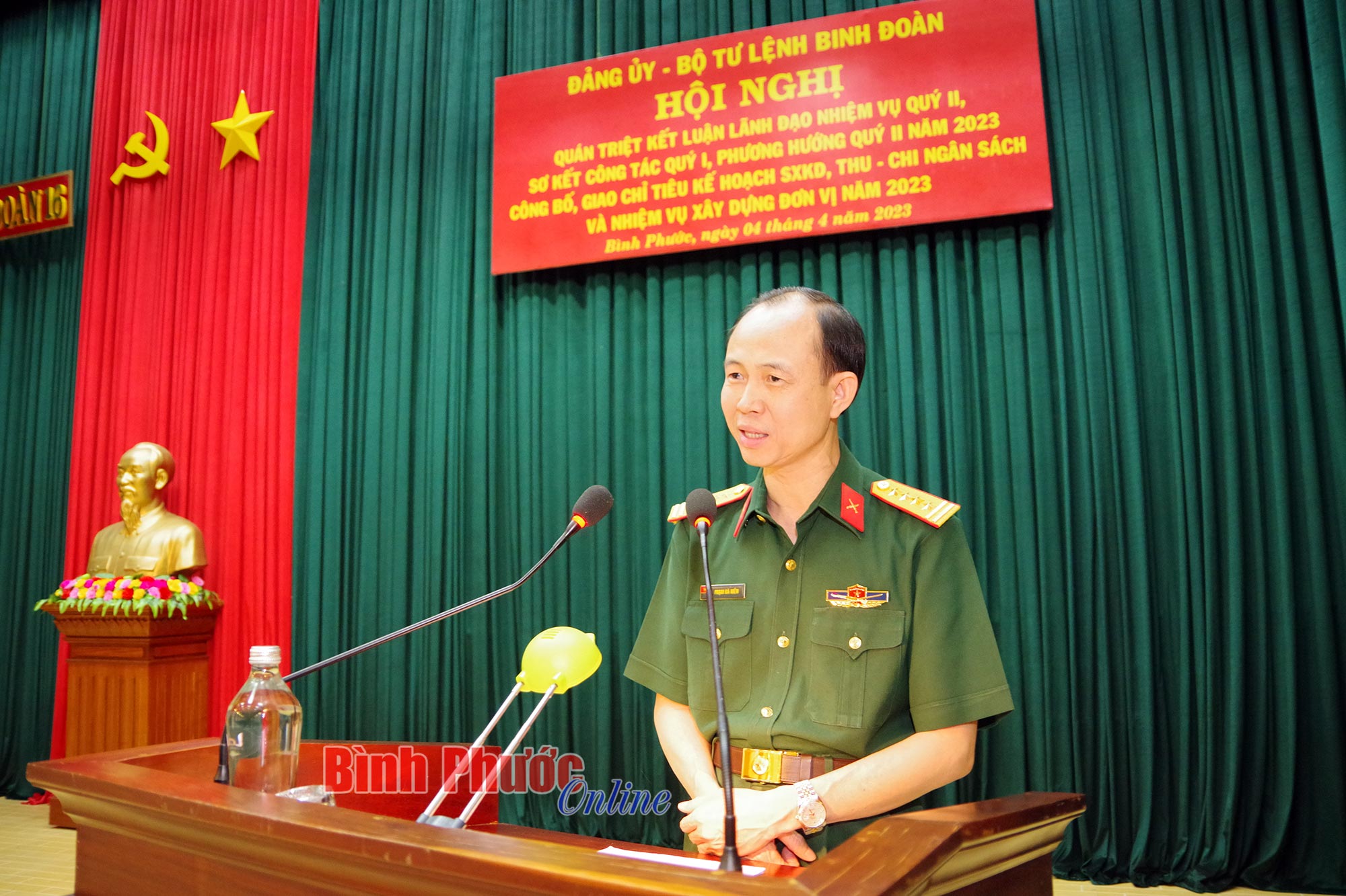 Kết luận hội nghị, Đại tá Phạm Bá Hiền, Tư lệnh Binh đoàn 16 biểu dương những kết quả mà các cơ quan, đơn vị đạt được trong thời gian qua; đồng thời yêu cầu các cơ quan, đơn vị trong thời gian tới duy trì nghiêm các chế độ trực và tổ chức lực lượng sẵn sàng chiến đấu; phối hợp với các lực lượng trên địa bàn nắm chắc tình hình, chủ động xử lý tốt các tình huống, không để bị động, bất ngờ xảy ra. Tăng cường công tác quản lý, điều hành sản xuất kinh doanh. Quan tâm đến đời sống, thu nhập, các chế độ chính sách của người lao động. Tổ chức tốt các phong trào thi đua, hoạt động chào mừng kỷ niệm 25 năm ngày truyền thống Binh đoàn 16 (8-12-1998 - 8-12-2023).