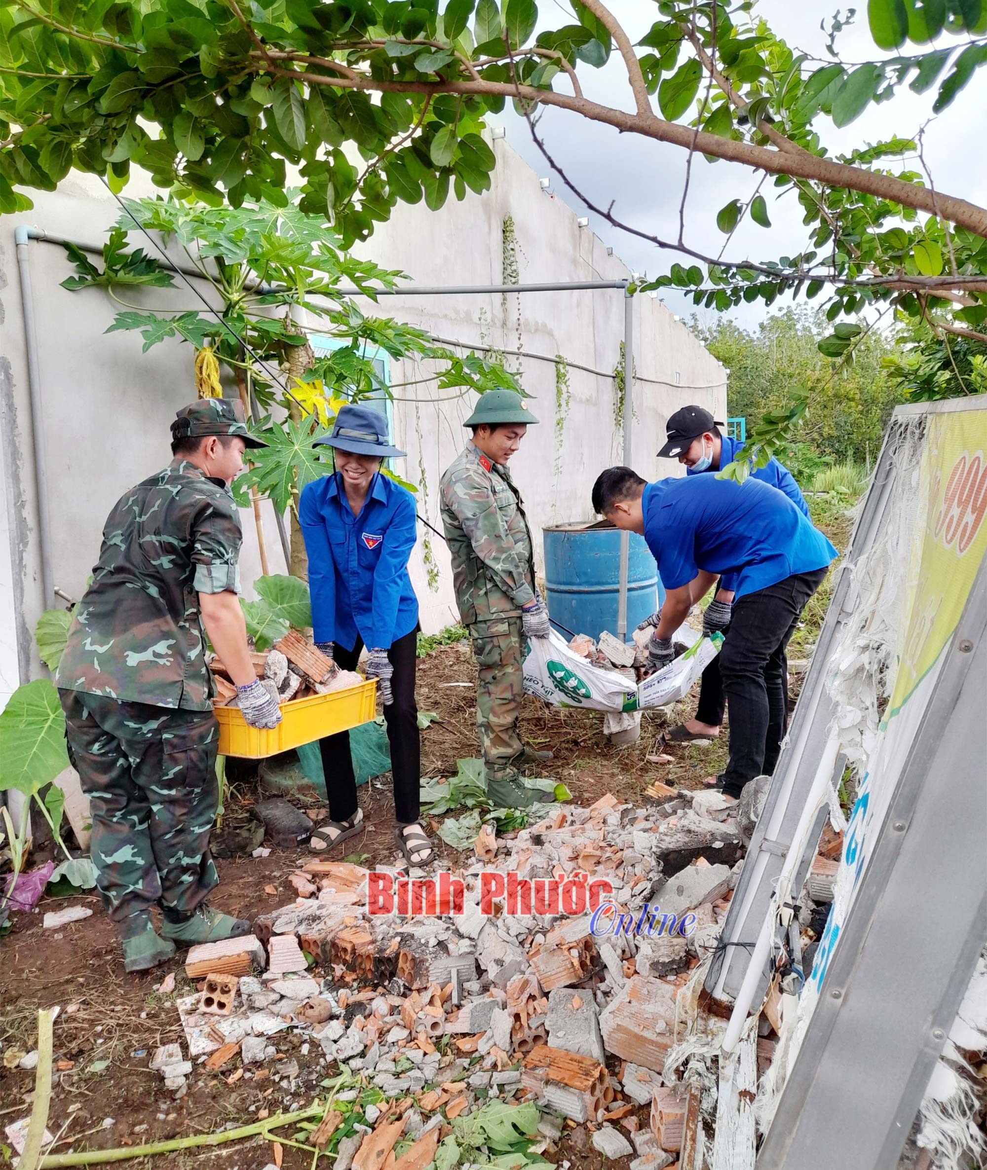 Cán bộ, đoàn viên Trung đoàn 717 hỗ trợ người dân khắc phục hậu quả thiên tai