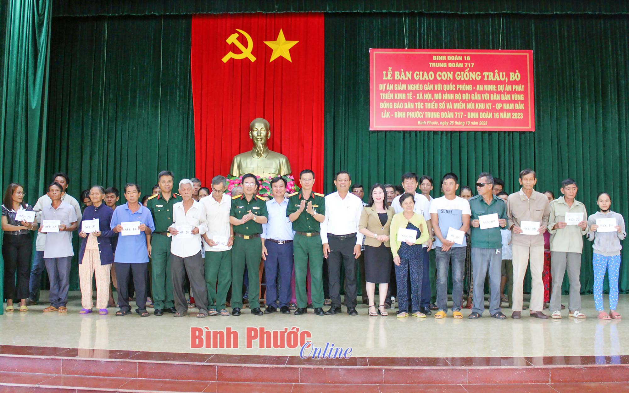 Tại buổi lễ, các hộ bốc thăm để nhận 174 con trâu, bò giống, với tổng trị giá trên 3,6 tỷ đồng. Theo đó có 95 con bò cái giống bàn giao cho 95 hộ thuộc các xã Thiện Hưng, Thanh Hòa và Tân Thành; 60 con trâu cái giống được trao cho 60 hộ dân các xã Hưng Phước, Phước Thiện, Tân Tiến; 19 con trâu cái giống được trao cho các hộ dân xã Lộc An, huyện Lộc Ninh.