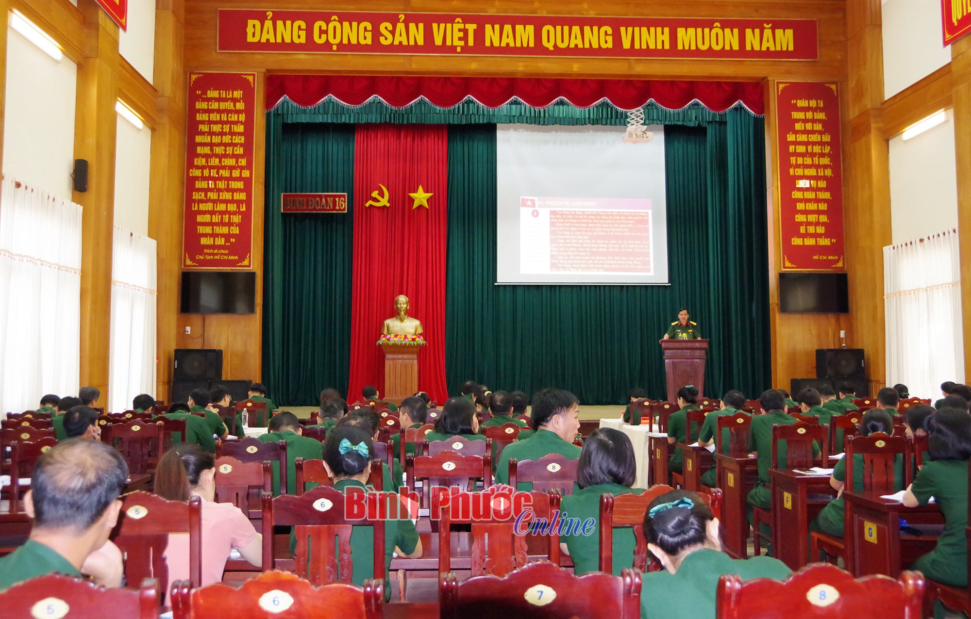 Thượng tá Trịnh Phạm Hòa, Chủ nhiệm Chính trị Binh đoàn 16 truyền đạt chuyên đề đến cán bộ, đảng viên