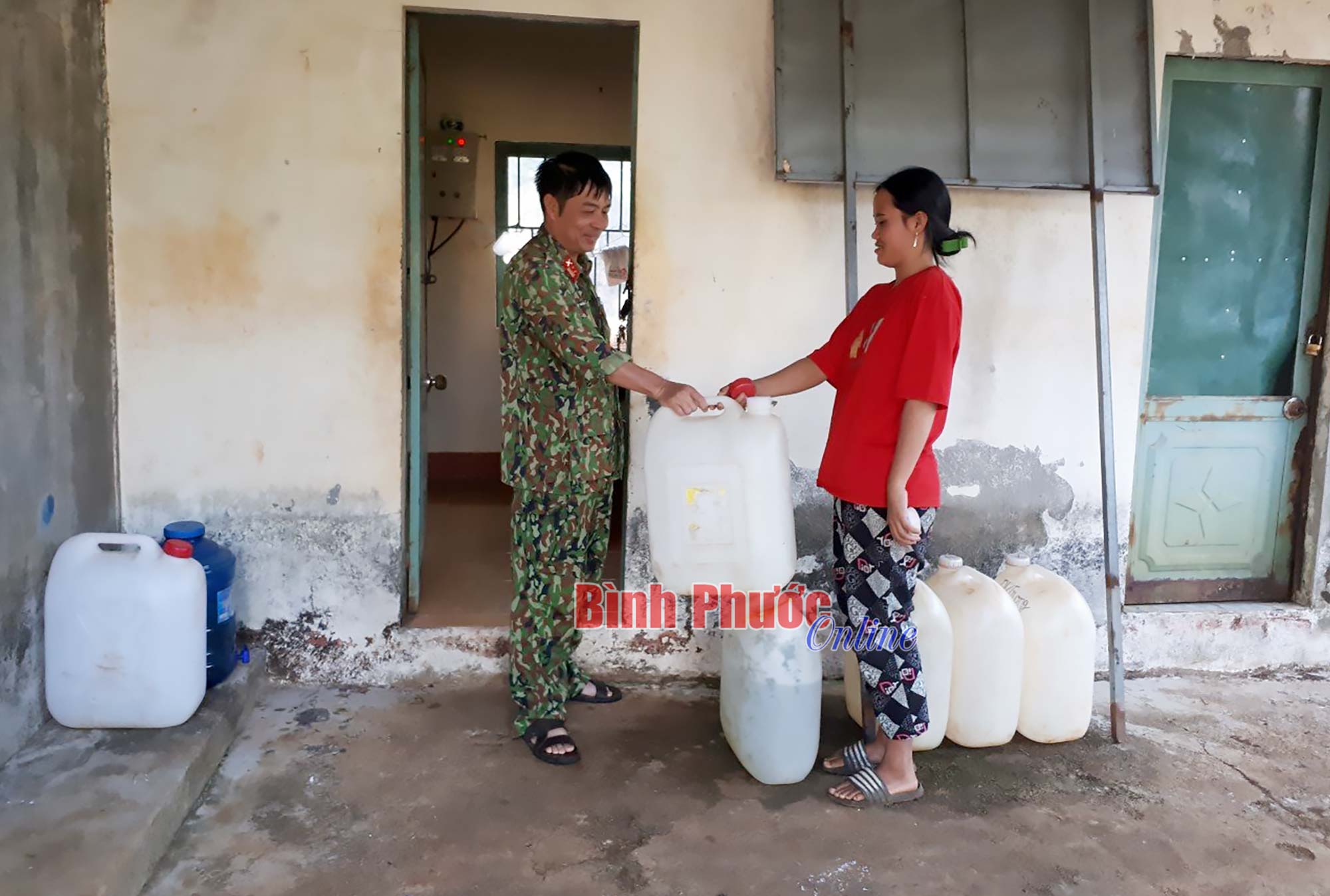 Cán bộ Trung đoàn 720 chia sẻ từng can nước sinh hoạt với người dân vùng dự án