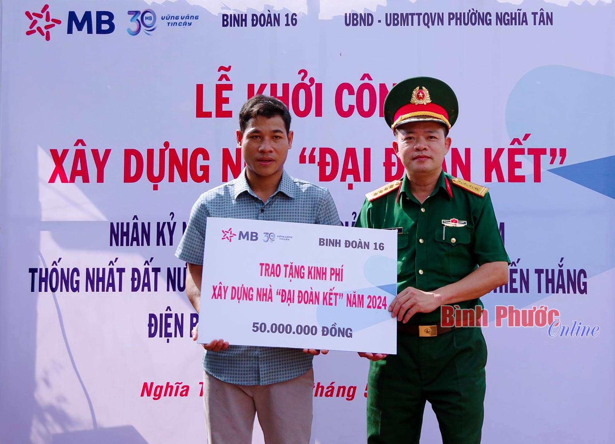2 căn nhà đại đoàn kết được khởi công trong đợt này được trao cho 2 hộ gia đình cận nghèo, tật nguyền, mắc bệnh hiểm nghèo, trên địa bàn xã Đắk Nia và phường Nghĩa Tân, thành phố Gia Nghĩa. Binh đoàn hỗ trợ mỗi căn trị giá 50 triệu đồng, số tiền còn lại do gia đình, họ hàng, địa phương đối ứng, hỗ trợ ngày công. Mỗi căn nhà sau khi hoàn thành trị giá từ 90-150 triệu đồng.