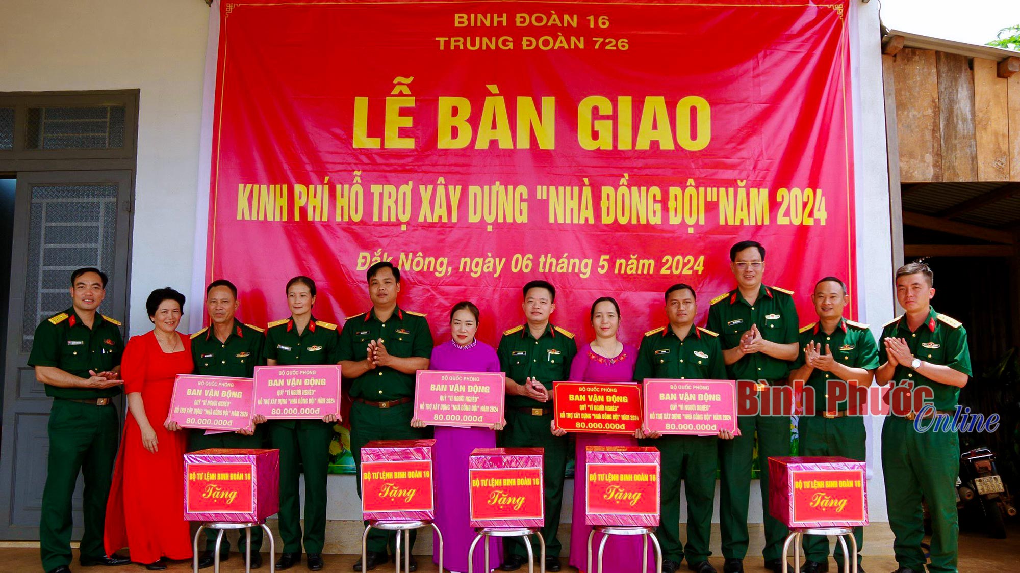 Dịp này, Binh đoàn 16 cũng đã trao tặng kinh phí hỗ trợ xây dựng “nhà đồng đội” năm 2024 cho 5 gia đình quân nhân, viên chức quốc phòng có hoàn cảnh khó khăn về nhà ở thuộc Trung đoàn 726, với tổng kinh phí 400 triệu đồng.