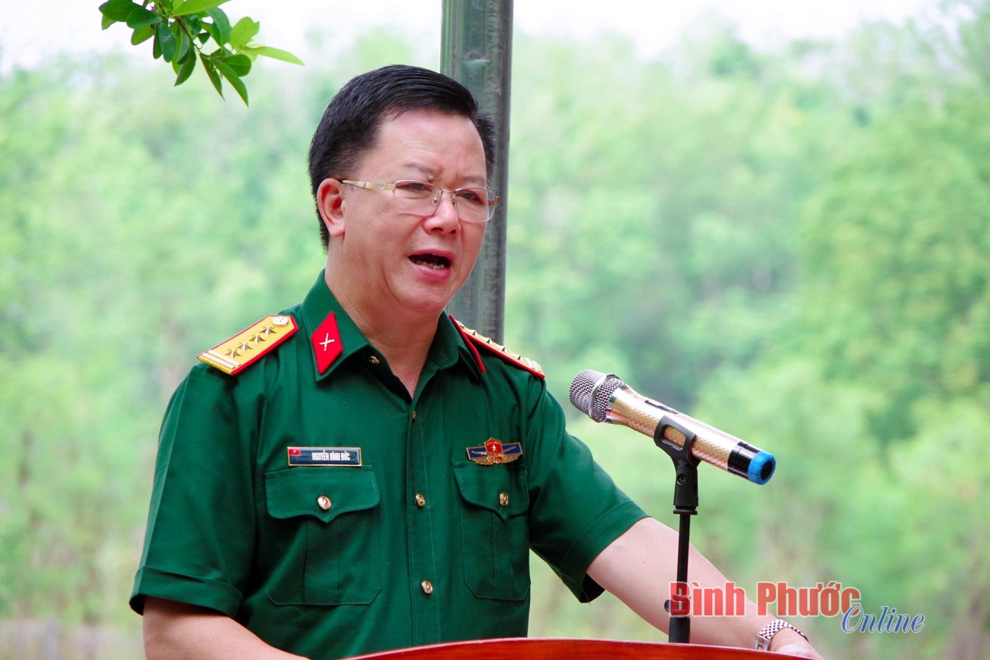 Đại tá Nguyễn Đình Đức, Trưởng Ban Công đoàn Quốc phòng phát biểu tại buổi thăm, tặng quà và khánh thành nhà “mái ấm công đoàn, nghĩa tình đồng đội”