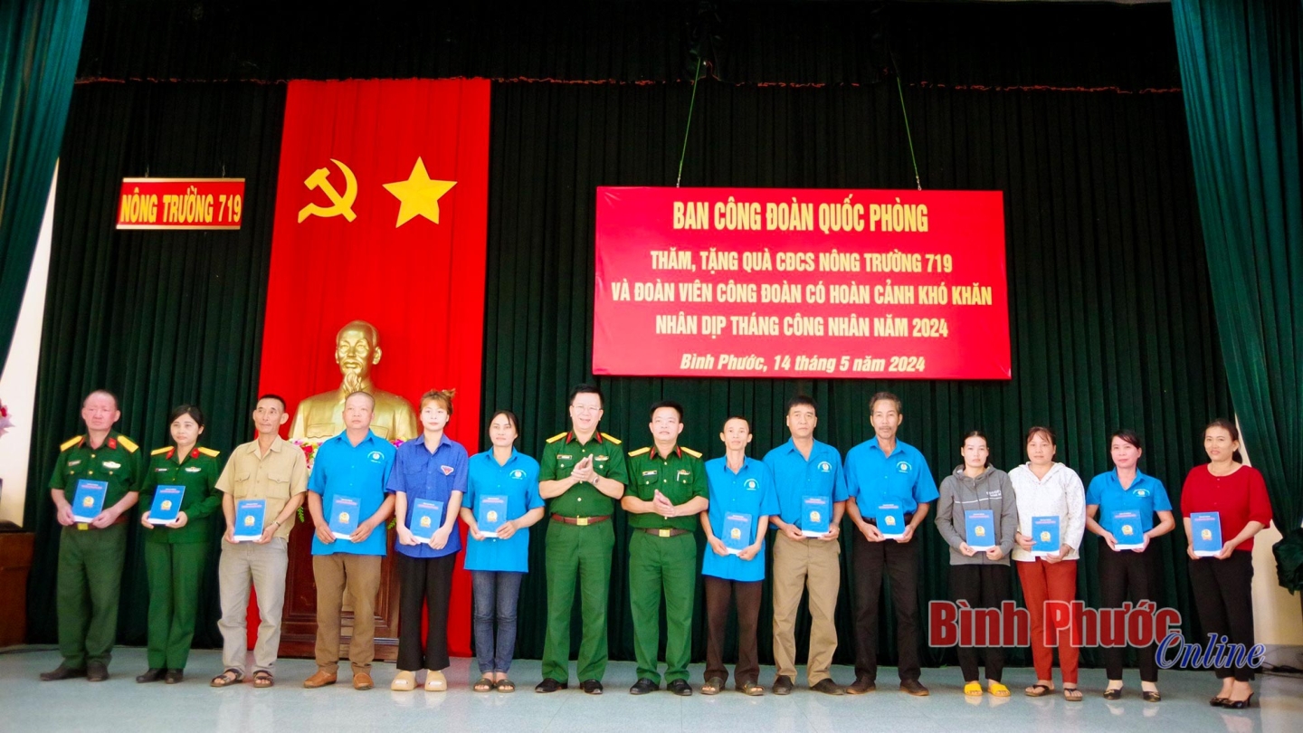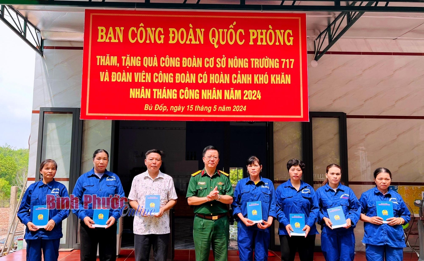 Ban Công đoàn Quốc phòng cũng đã trao 1 suất quà (5 triệu đồng) cho Công đoàn cơ sở Nông trường 717 và trao tặng 16 phần quà (1 triệu đồng/phần) cho 16 công đoàn viên có hoàn cảnh khó khăn, mắc bệnh hiểm nghèo của nông trường.