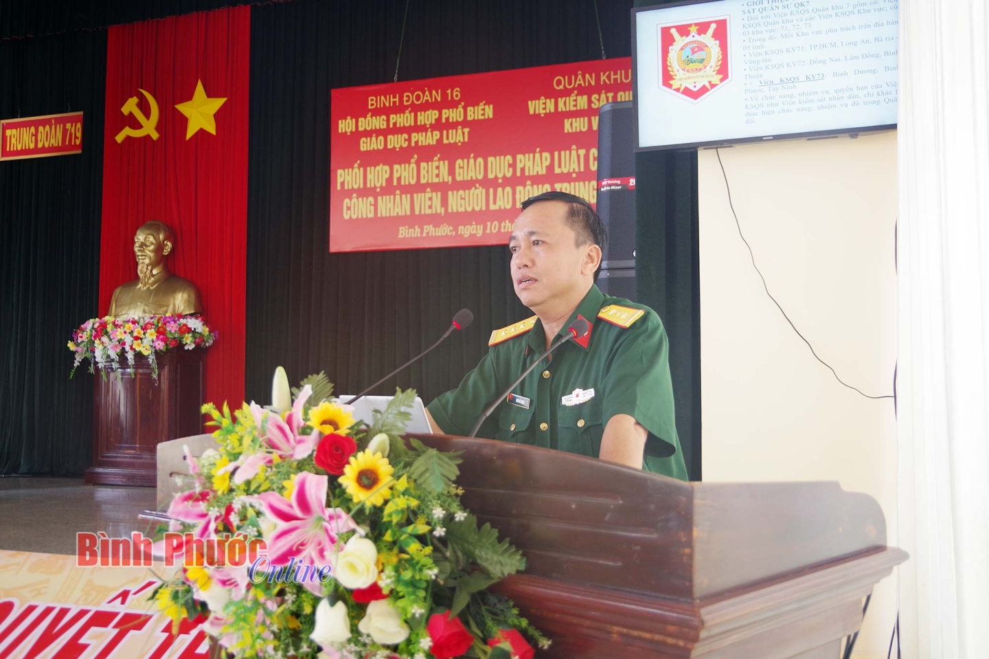 Trung đoàn 719 (Binh đoàn 16) tổ chức tuyên truyền, phổ biến pháp luật cho sĩ quan quân nhân chuyên nghiệp, công nhân viên chức quốc phòng, lao động hợp đồng, dân quân tự vệ trong đơn vị