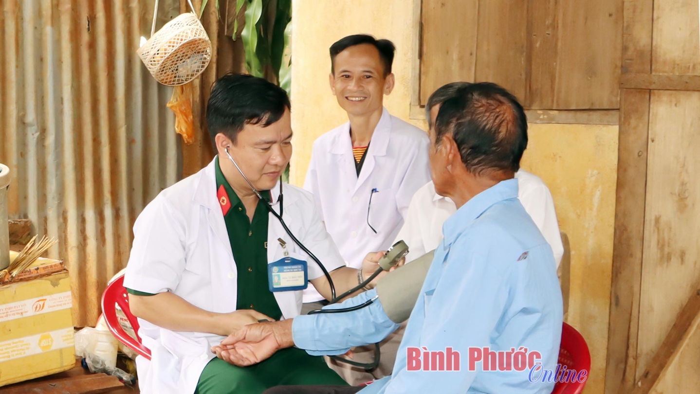 Bác sĩ Bệnh xá Quân dân y Trung đoàn 719 thăm khám bệnh cho người dân trên địa bàn đóng quân