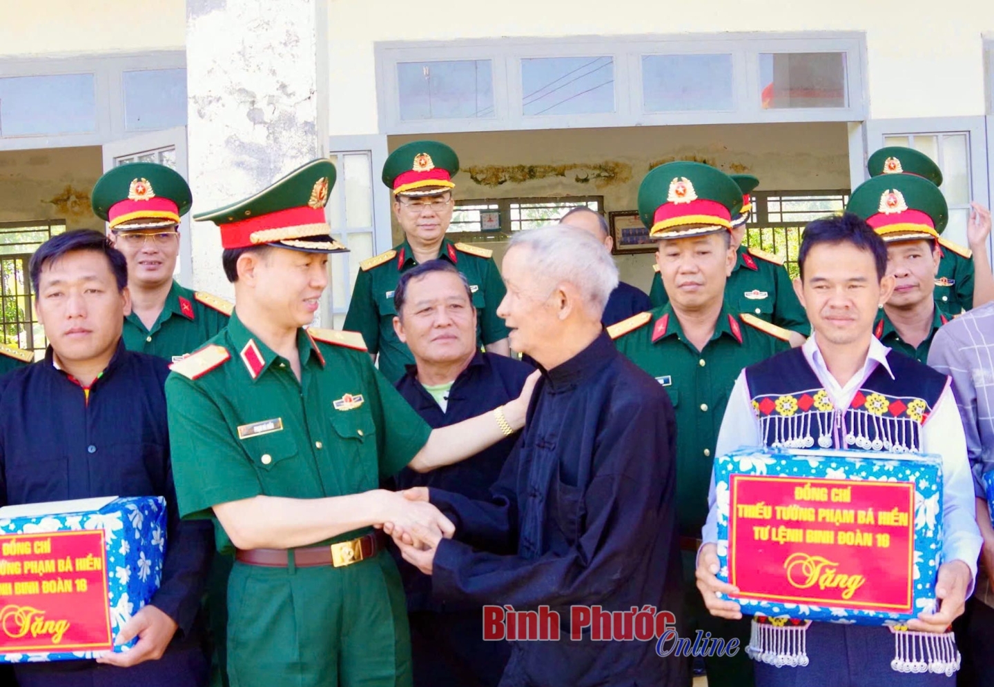 Thiếu tướng Phạm Bá Hiền, Tư lệnh Binh đoàn 16 tặng quà cho các bản đồng bào Mông trên địa bàn huyện Tuy Đức, tỉnh Đắk Nông nhân Ngày hội đại đoàn kết dân tộc năm 2024