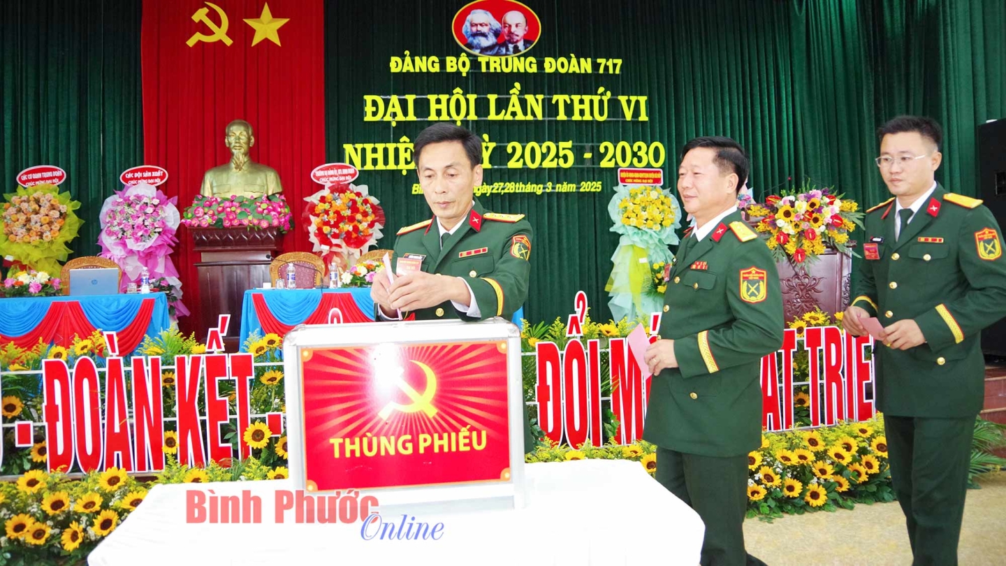 Các đại biểu bỏ phiếu bầu Ban Chấp hành Đảng bộ Trung đoàn 717 nhiệm kỳ 2025-2030 và đoàn đại biểu dự Đại hội Đảng bộ Binh đoàn lần thứ VI