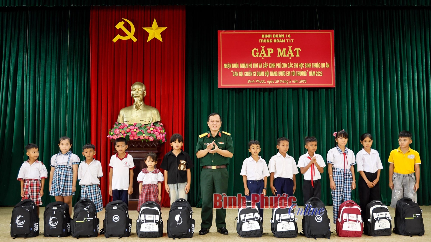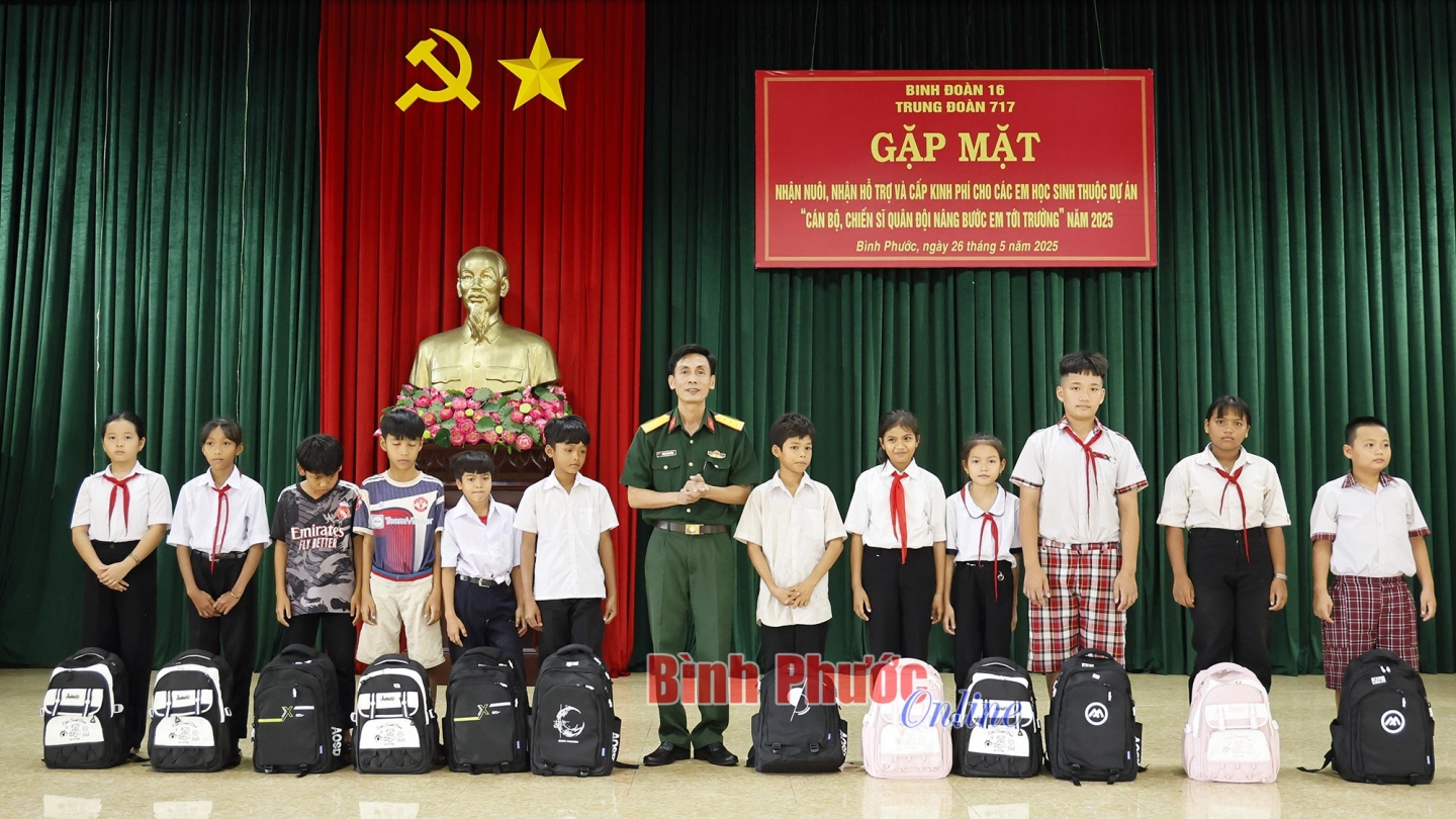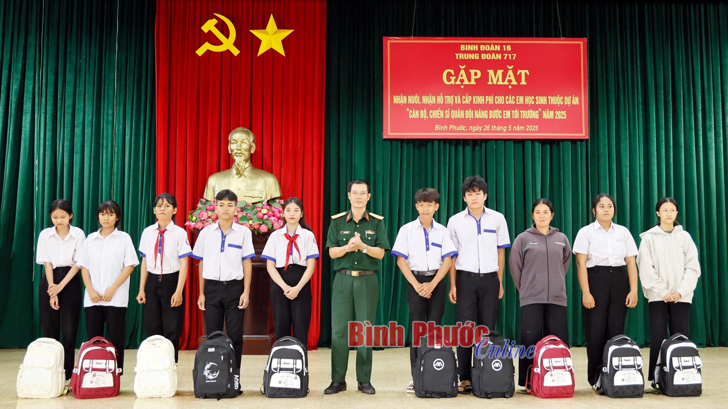 Phát biểu tại chương trình, Thượng tá Hoàng Trung Đồng, Trung đoàn trưởng Trung đoàn 717 cho biết: Thực hiện dự án “Cán bộ, chiến sĩ quân đội nâng bước em tới trường” từ năm 2022 đến nay, Trung đoàn 717 nhận nuôi và hỗ trợ gần 1 tỷ 500 triệu đồng cho 58 học sinh có hoàn cảnh khó khăn trong vùng dự án. Qua đó giúp các em học sinh có hoàn cảnh khó khăn vượt khó, vươn lên trong học tập.