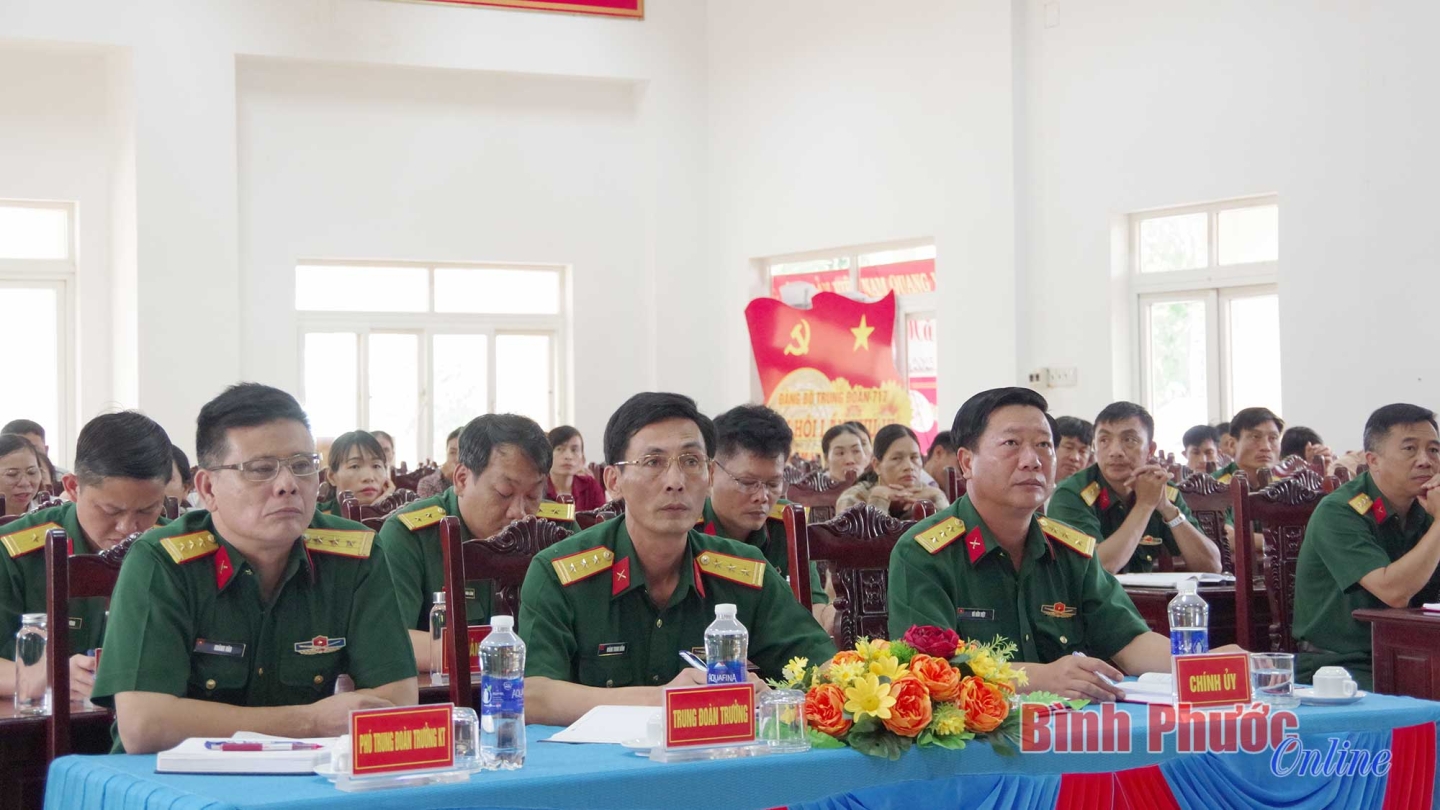 Thượng tá Hoàng Trung Đồng, Phó Bí thư Đảng ủy, Trung đoàn trưởng báo cáo tổng hợp các ý kiến, kiến nghị của cán bộ, nhân viên và người lao động tại hội nghị