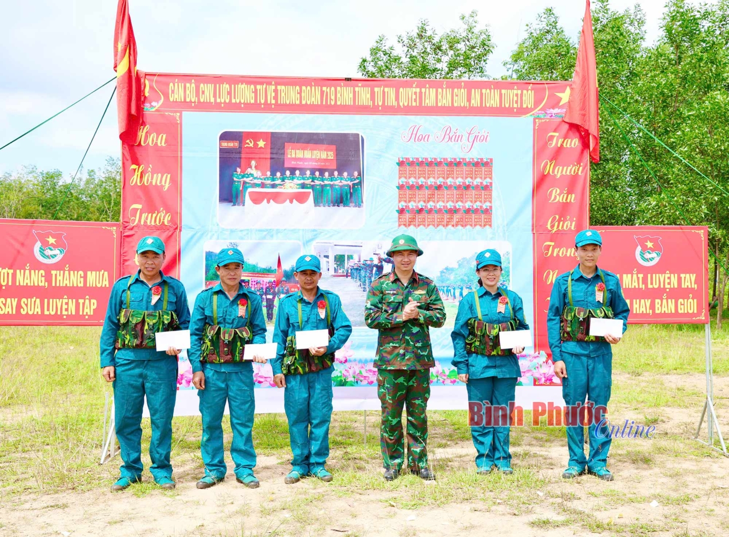 Trung tá Nguyễn Văn Thức, Trung đoàn trưởng Trung đoàn 719, trao hoa bắn giỏi cho lực lượng tự vệ bắn giỏi