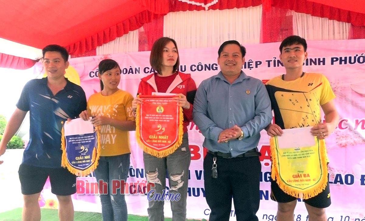 Chủ tịch công đoàn các KCN tỉnh Trần Bá Lợi trao giải cho các đội có thành tích xuất sắc ở phần thi thể thao môn cầu lông